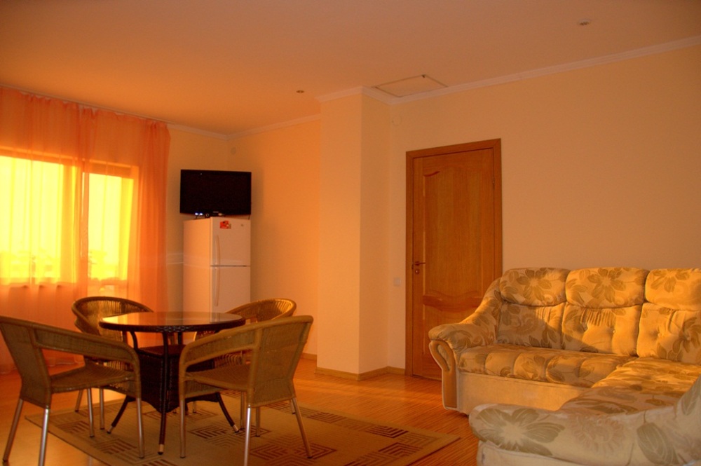 Апартаменты VIP - двухкомнатный номер с индивидуальной кухней. Находится на первом этаже двухэтажного корпуса, с индивидуальной зоной отдыха (беседка, мангал).
