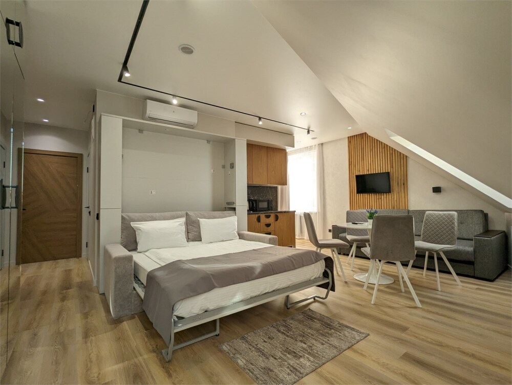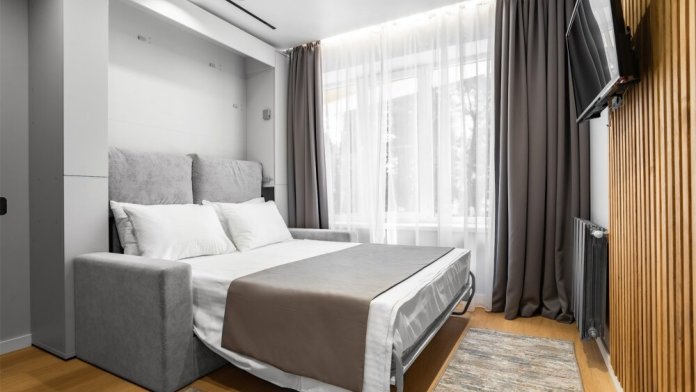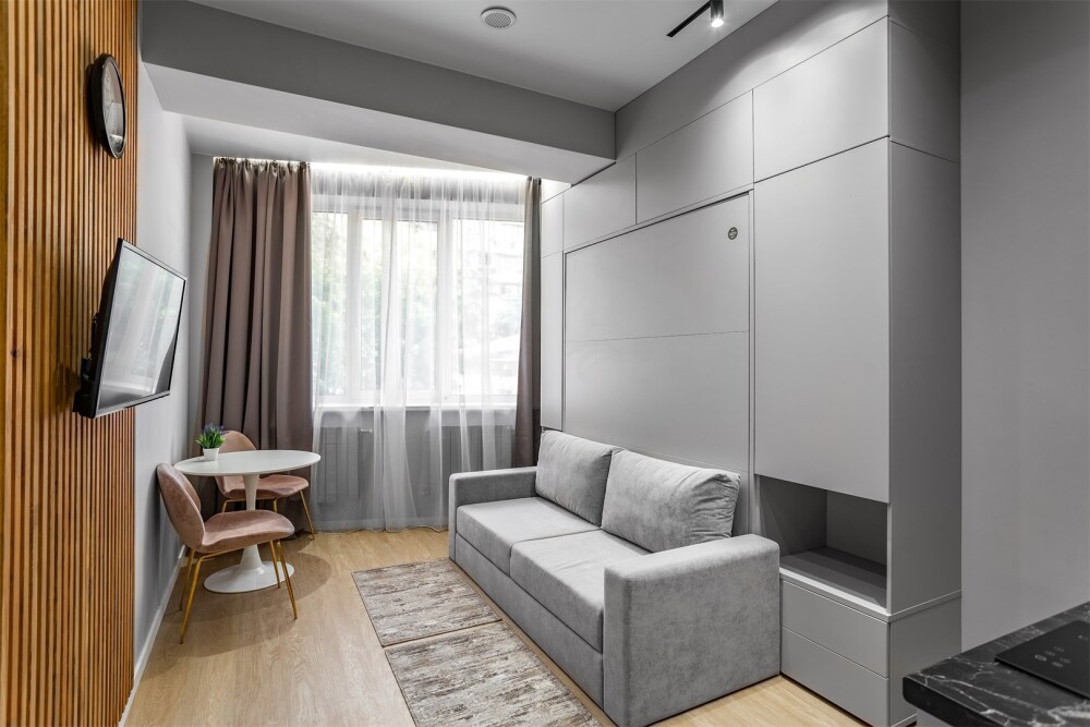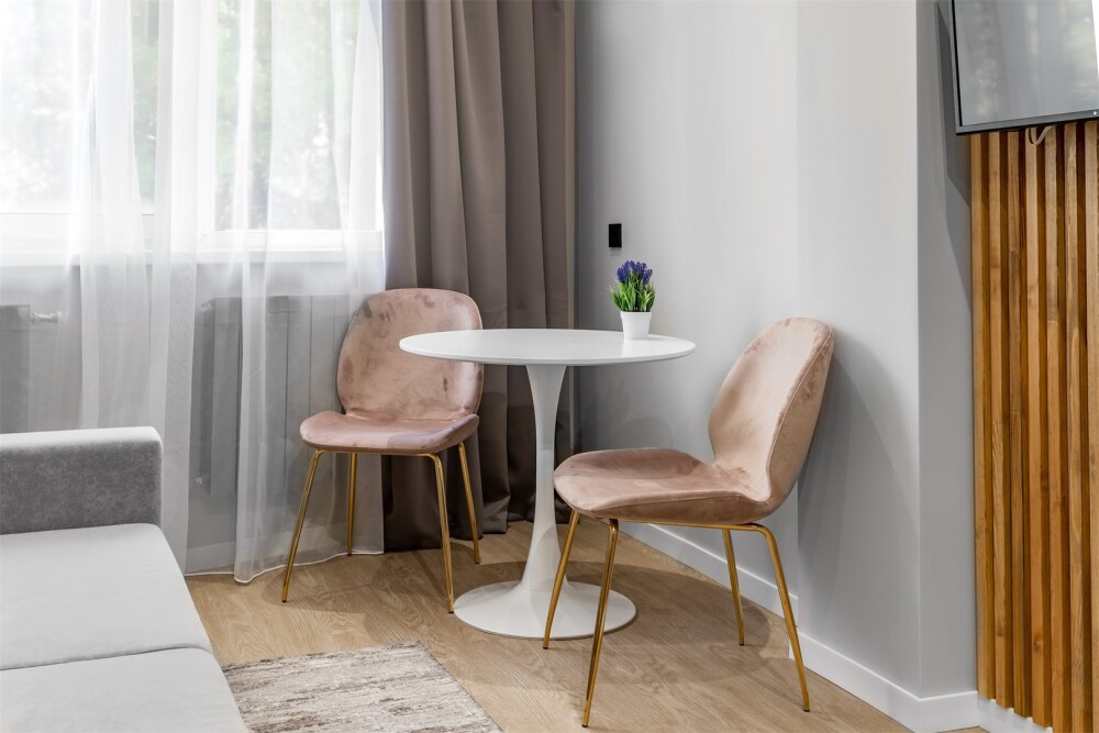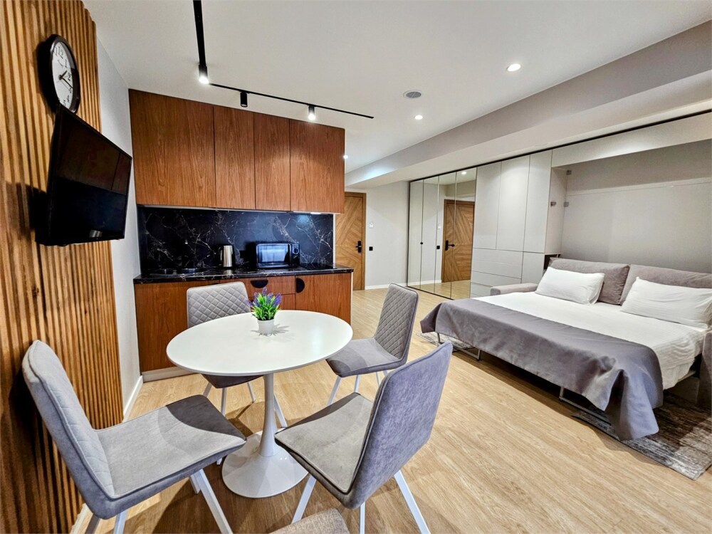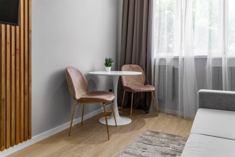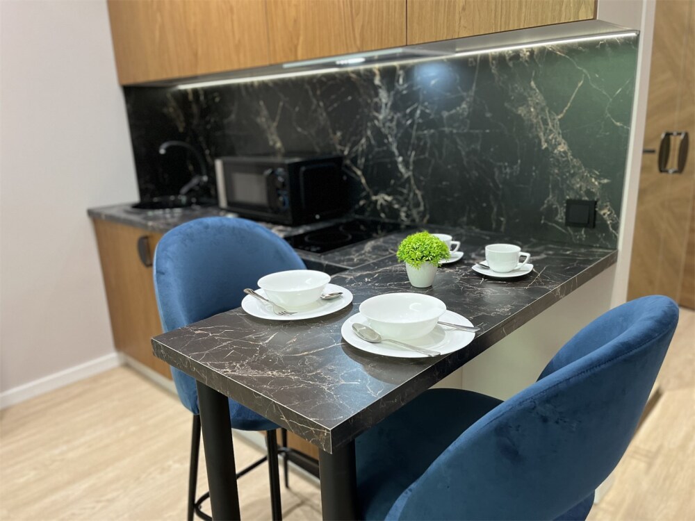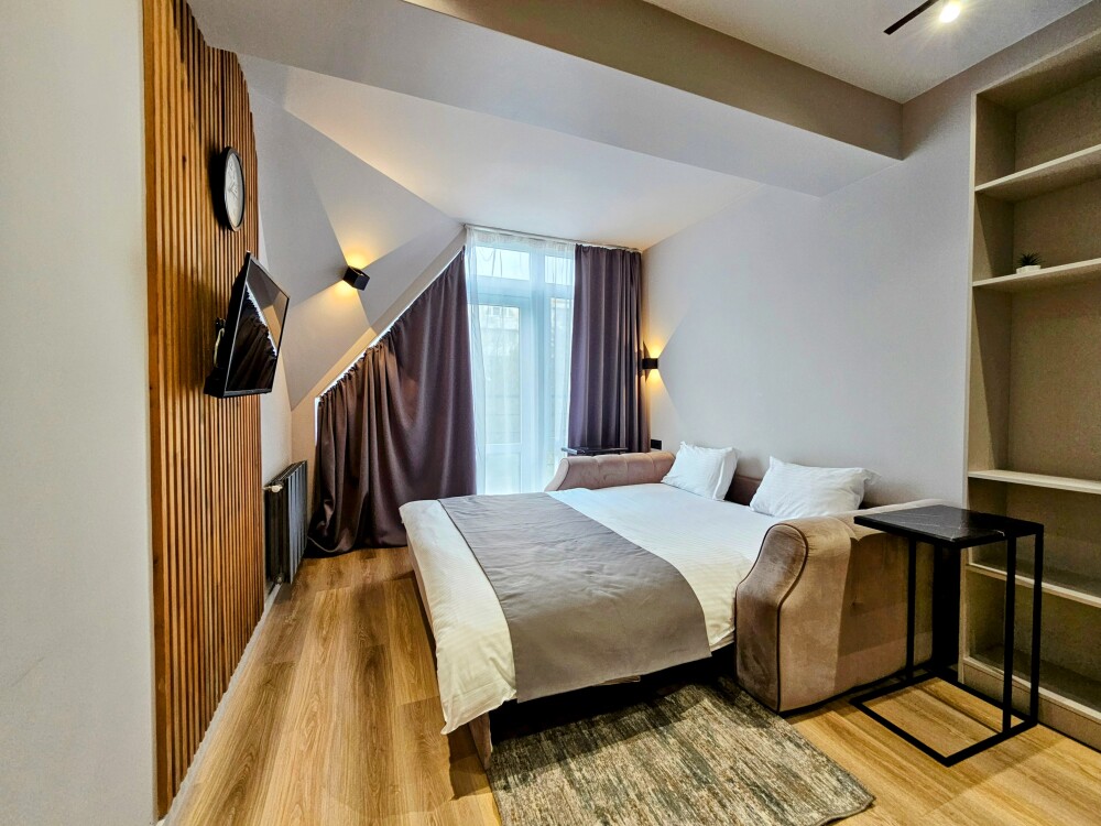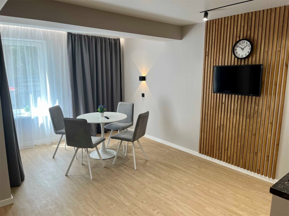 Каждый номер оформлен по персональному дизайн-проекту в стиле европейской классики. Полная комплектация современной мебелью и бытовой техникой для комфортного проживания.