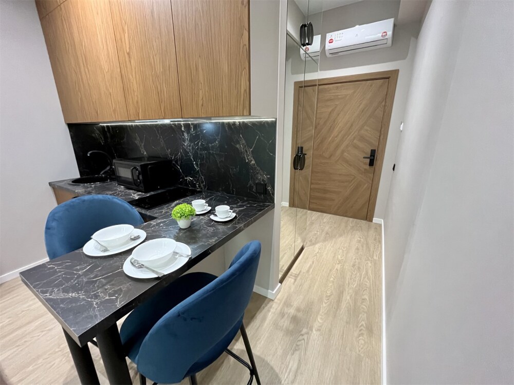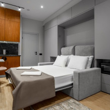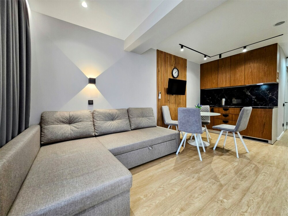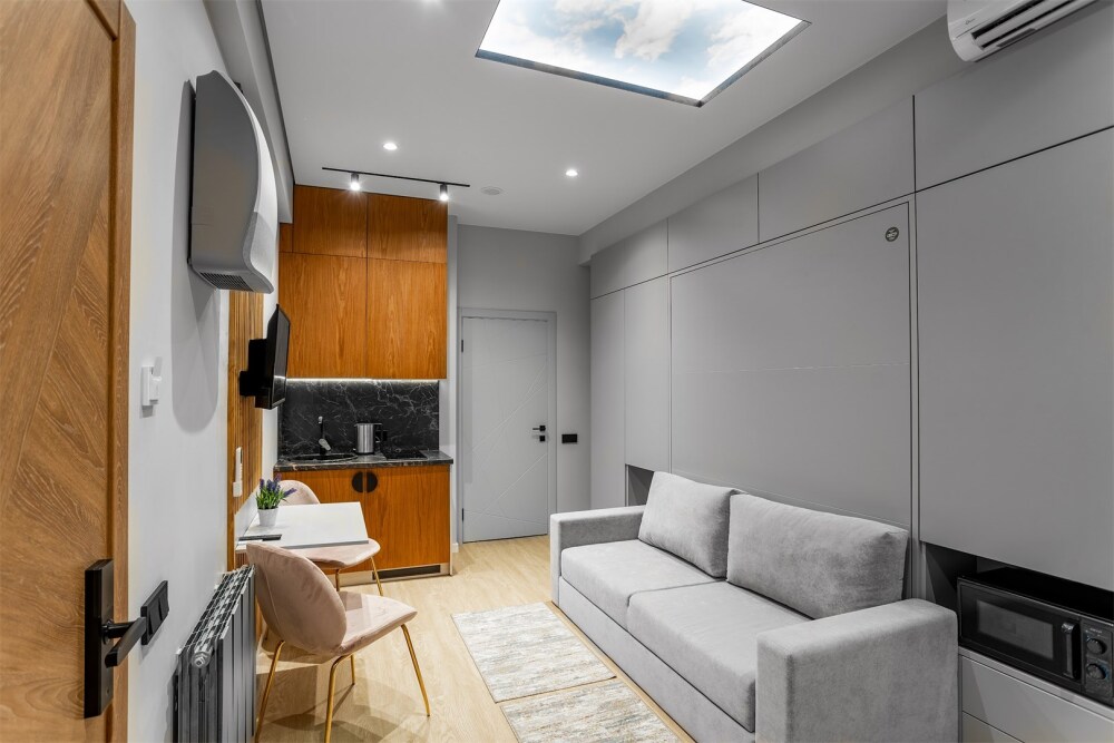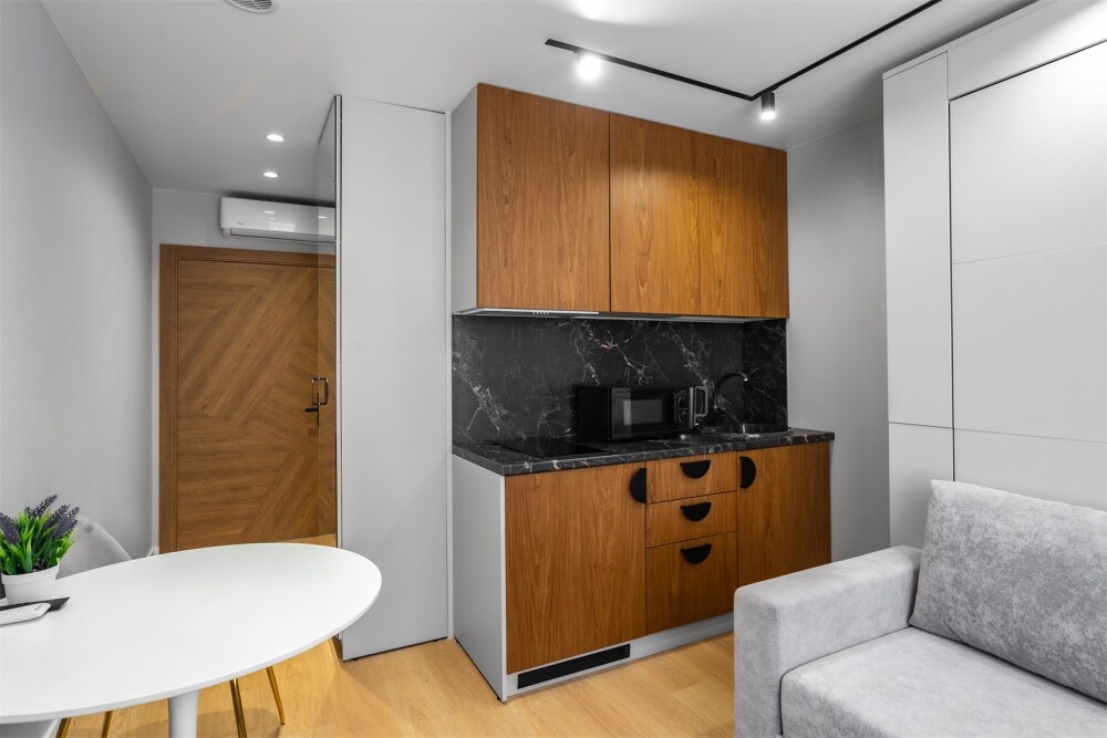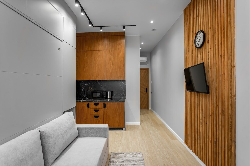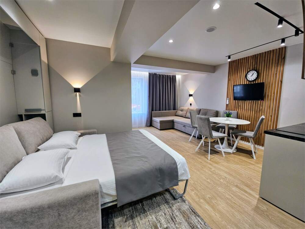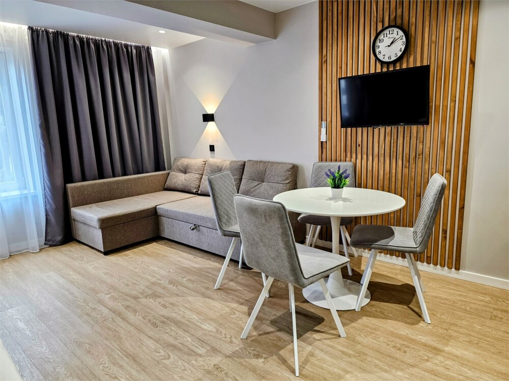 Каждый номер оформлен по персональному дизайн-проекту в стиле европейской классики. Полная комплектация современной мебелью и бытовой техникой для комфортного проживания.