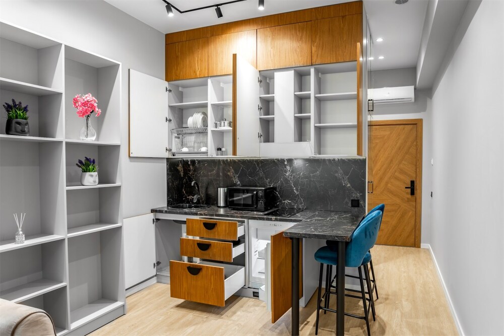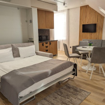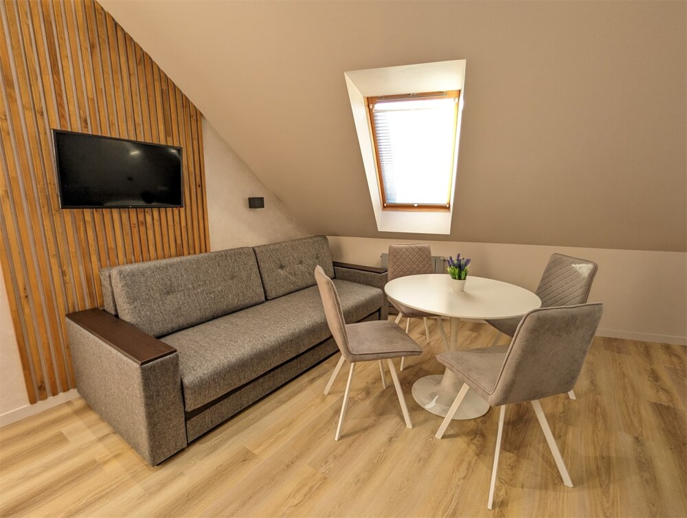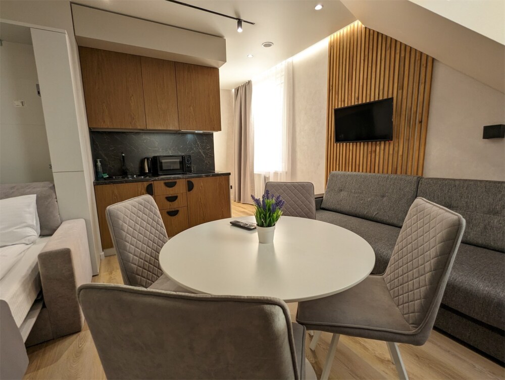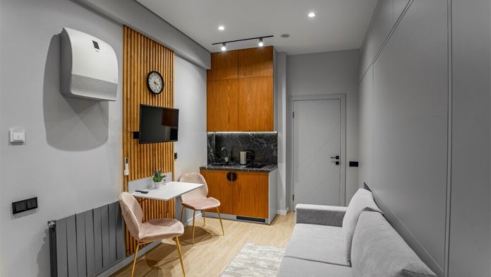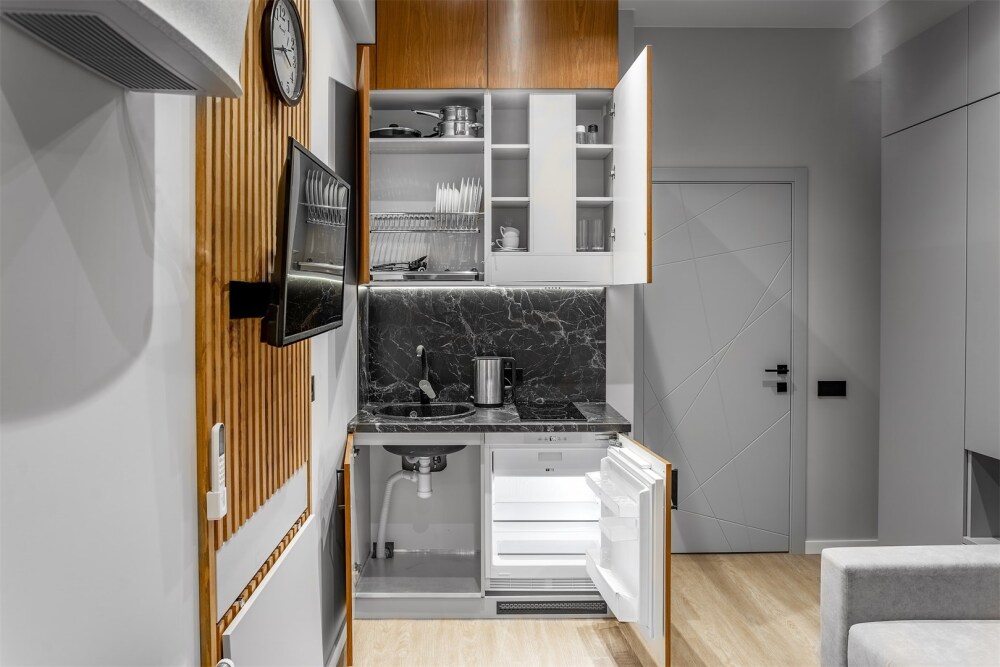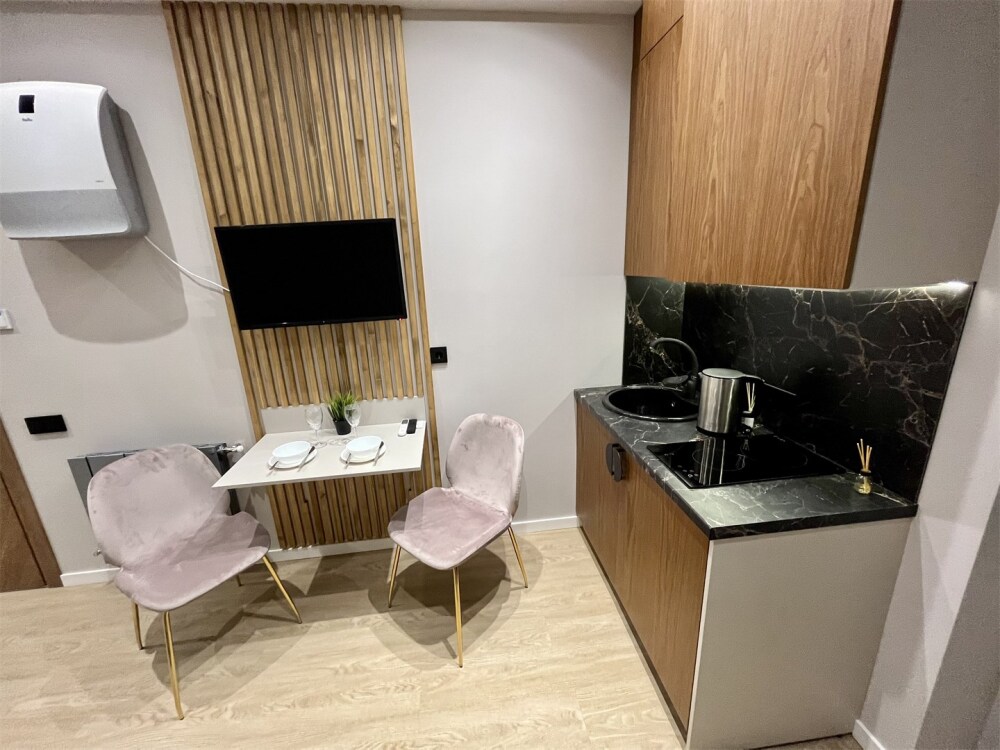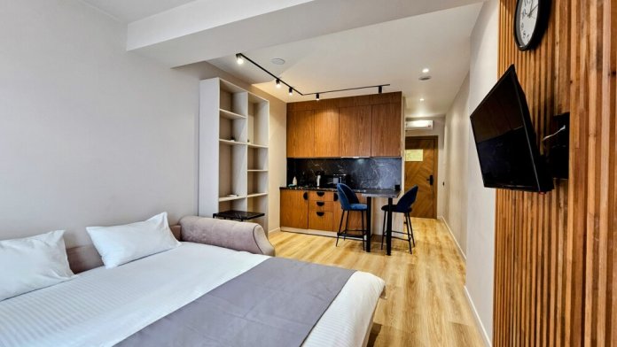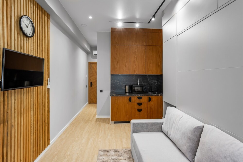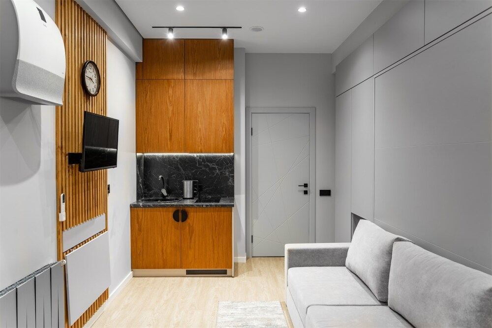 Каждый номер оформлен по персональному дизайн-проекту в стиле европейской классики. Полная комплектация современной мебелью и бытовой техникой для комфортного проживания.