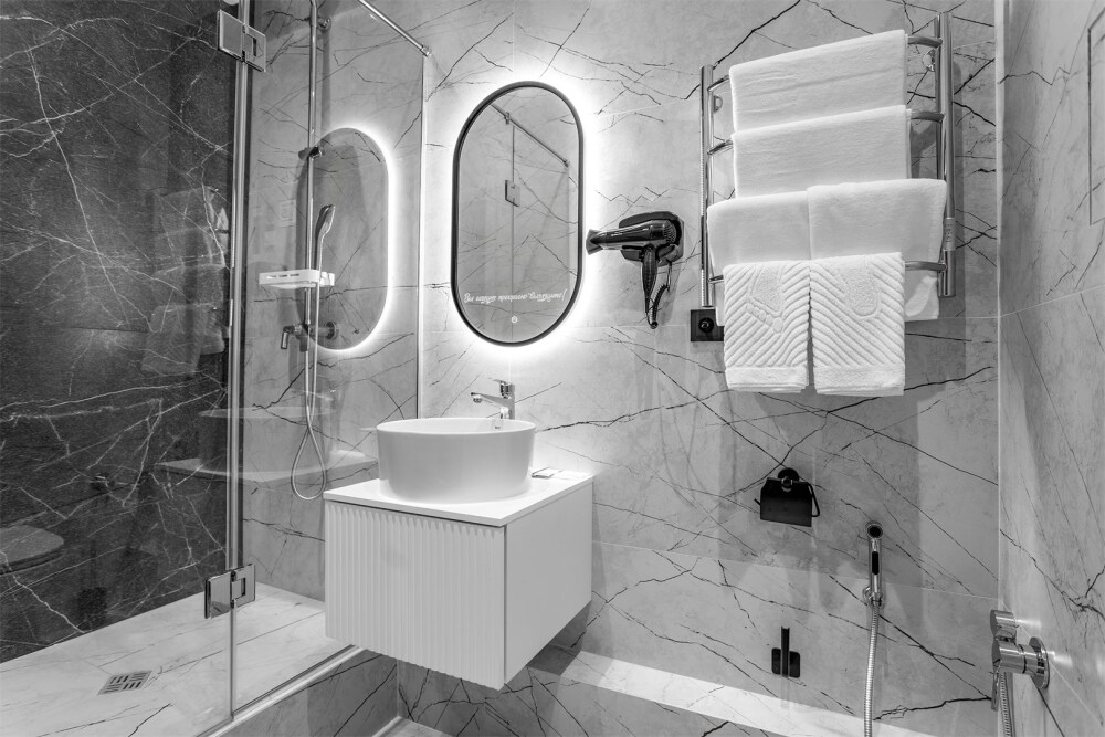 Вы можете взять в аренду халаты и принадлежности для душа. Аренда предоставляется на весь срок проживания.
