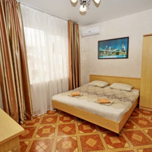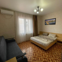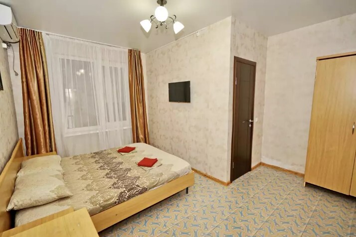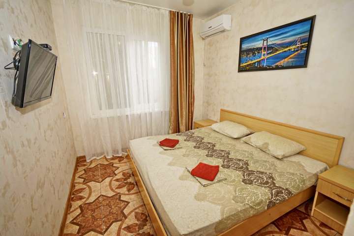 Техника: телевизор, холодильник, кондиционер. Удобства: постельное бельё, полотенца, вешалки, спутниковое ТВ, Wi-Fi.
