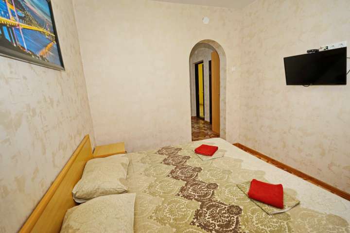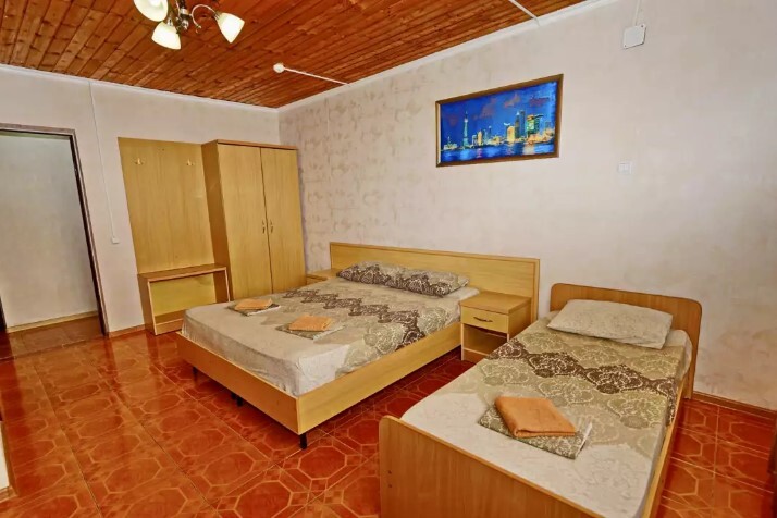 Удобства: постельное бельё, полотенца, вешалки, спутниковое ТВ, Wi-Fi, балкон.