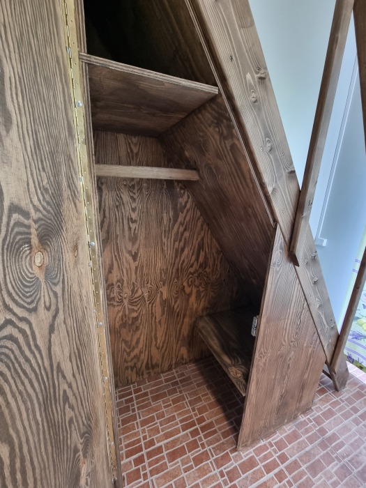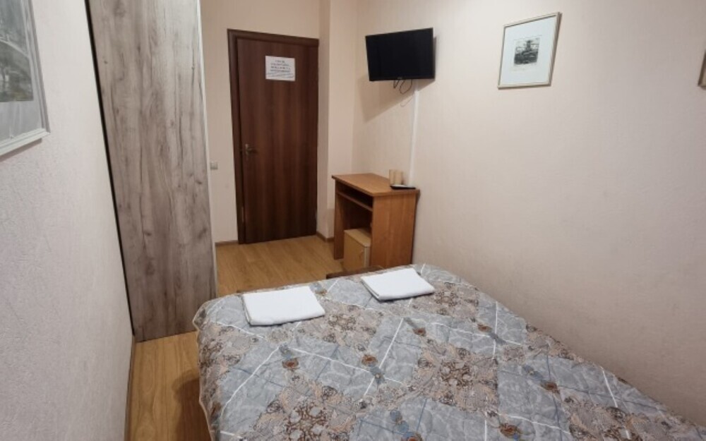 В номере: двуспальная кровать, двухъярусная кровать, телевизор, кондиционер, холодильник, туалетный столик, шкаф-стенка, тумбочки, пуфики, плотные занавески, фен, эркер, 1 этаж. Санузел совмещенный с душем в номере.
