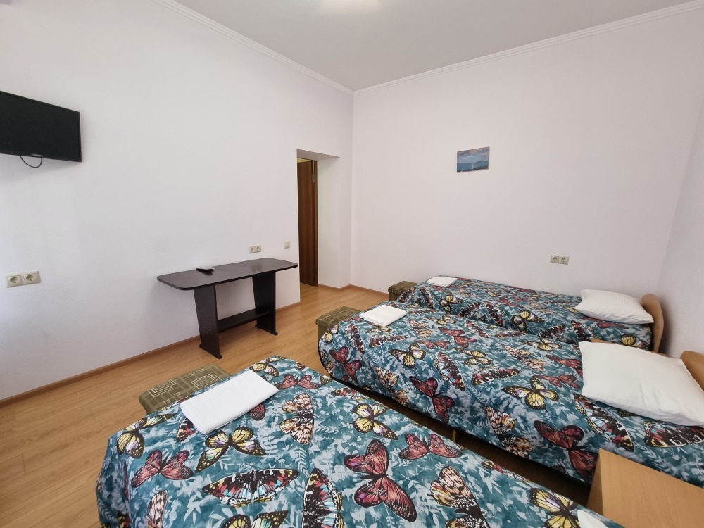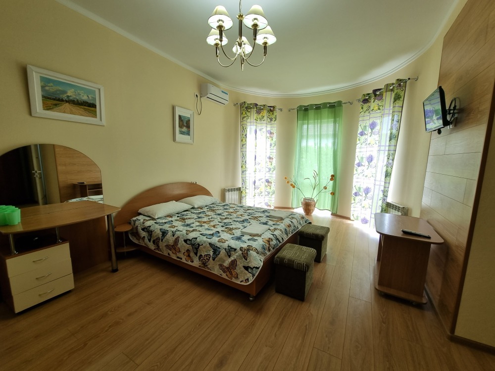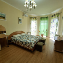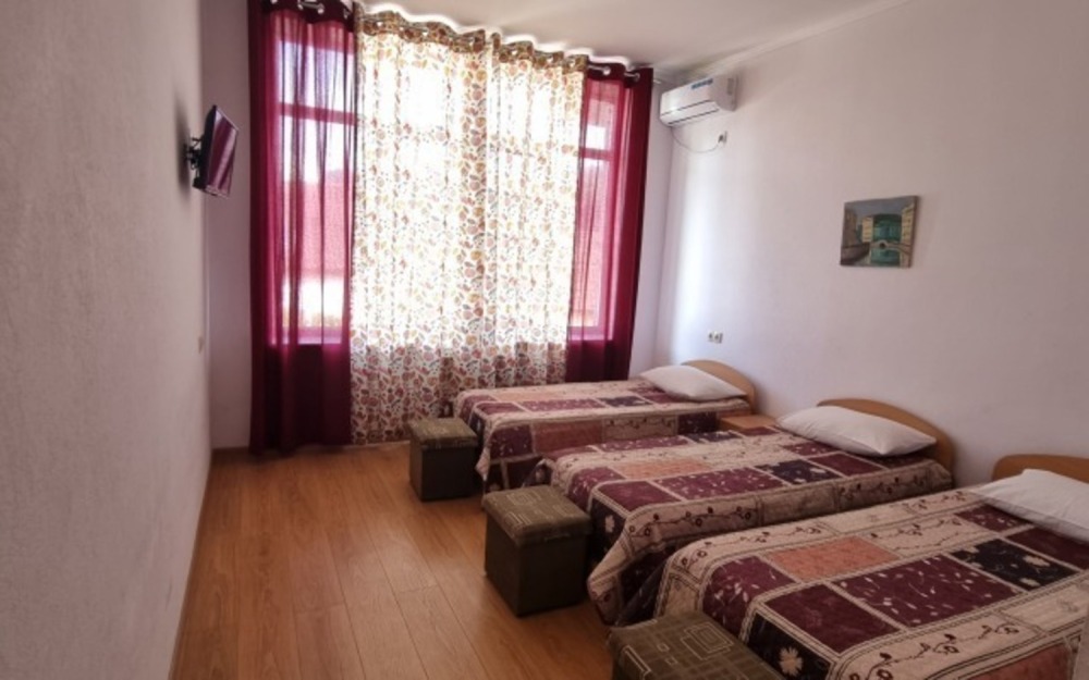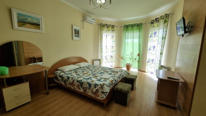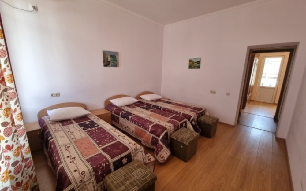 Новый, капитальный дом с 12 номерами. Комнаты номеров просторные, с хорошей мебелью и со всеми удобствами. Идеальная чистота и комфорт сочетаются с уютной тишиной курортного местечка.