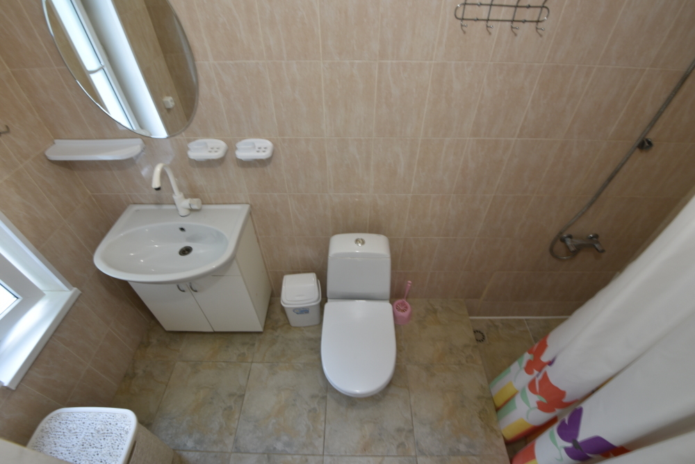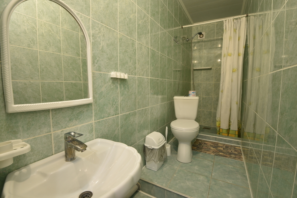 Душ и туалет общий на два номера.