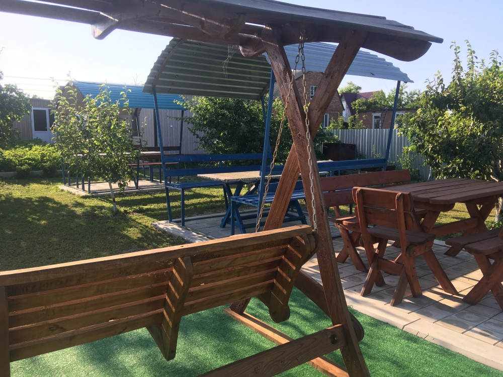 К услугам гостей большой облагороженный двор, 2 уличные беседки, мангалы, бесплатная парковка во дворе. Организована детская игровая площадка.