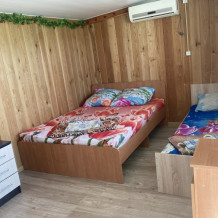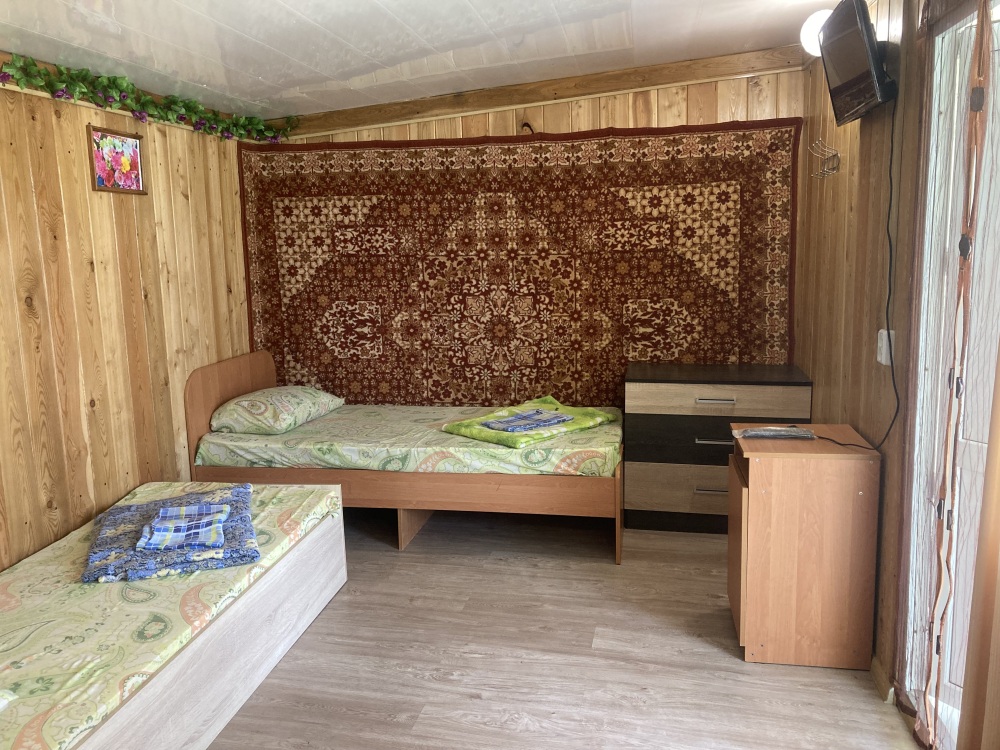 В каждом номере: комод, вешалка, зеркало, стулья, стол, сплит-система, холодильник, жк телевизор. Отдельно для каждого номера индивидуальный санузел (унитаз, раковина, душ). Холодная, горячая вода постоянно, подается через водонагреватель.