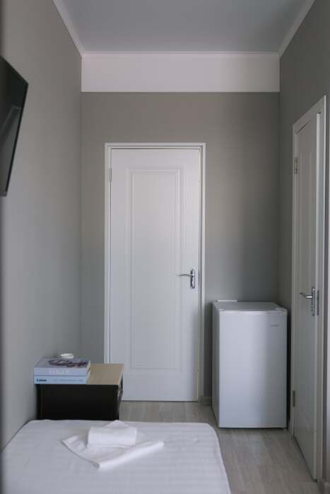 двуспальная и две односпальные кровати, санузел (душ, туалет, раковина), сплит-система, телевизор, холодильник. Номер на 2 этаже