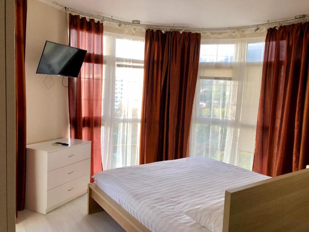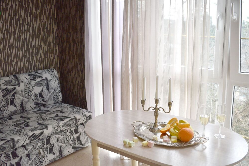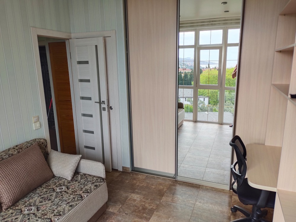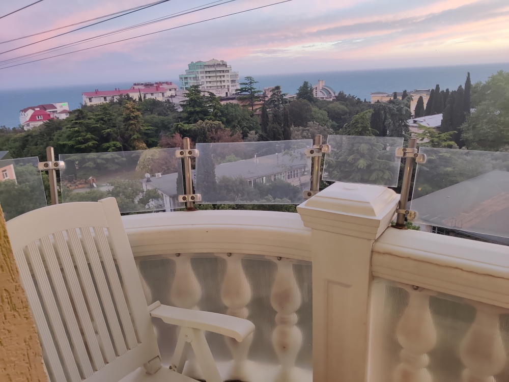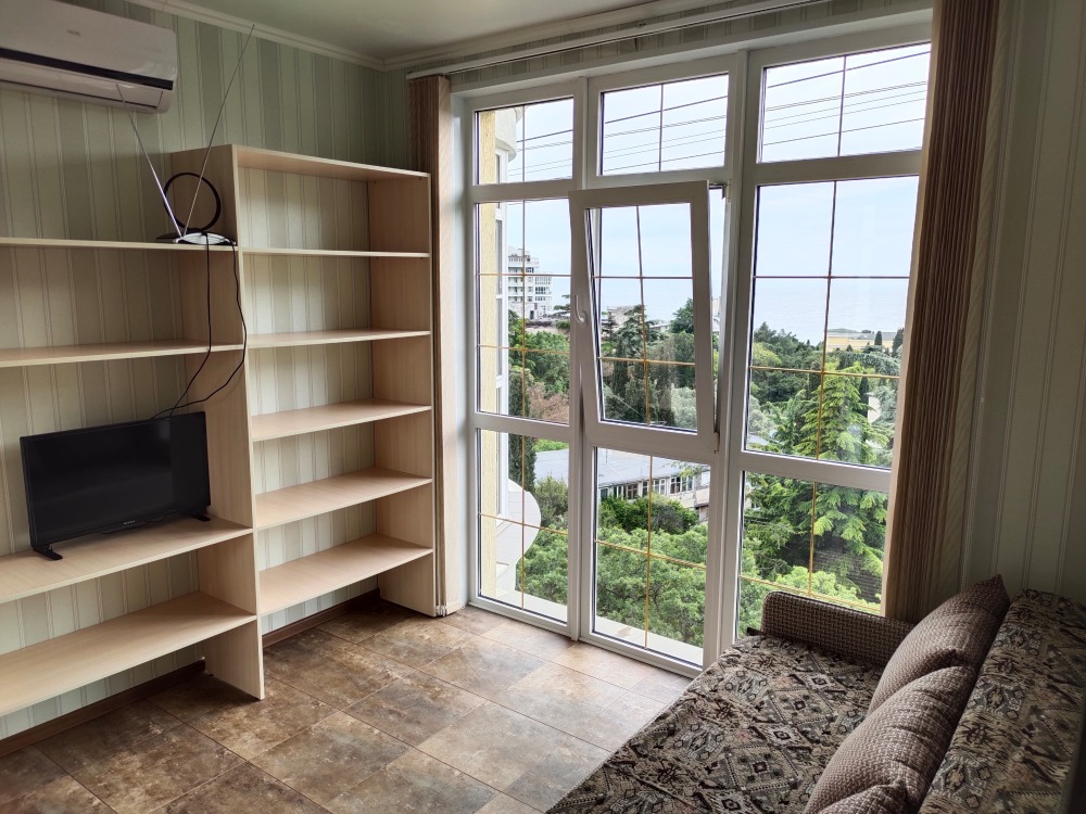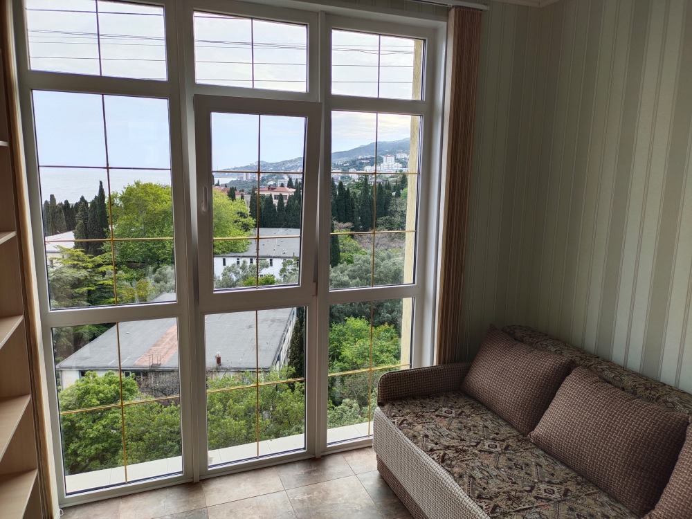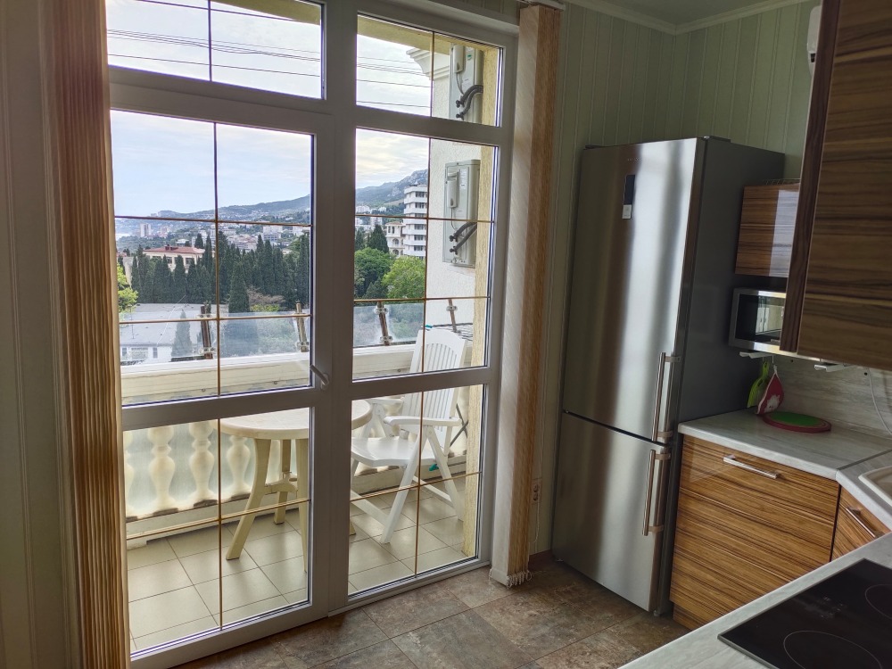 Уютные апартаменты с большим балконом с прекрасным видом на море и горы Ай-Петри. Отдельная полноценная кухня.