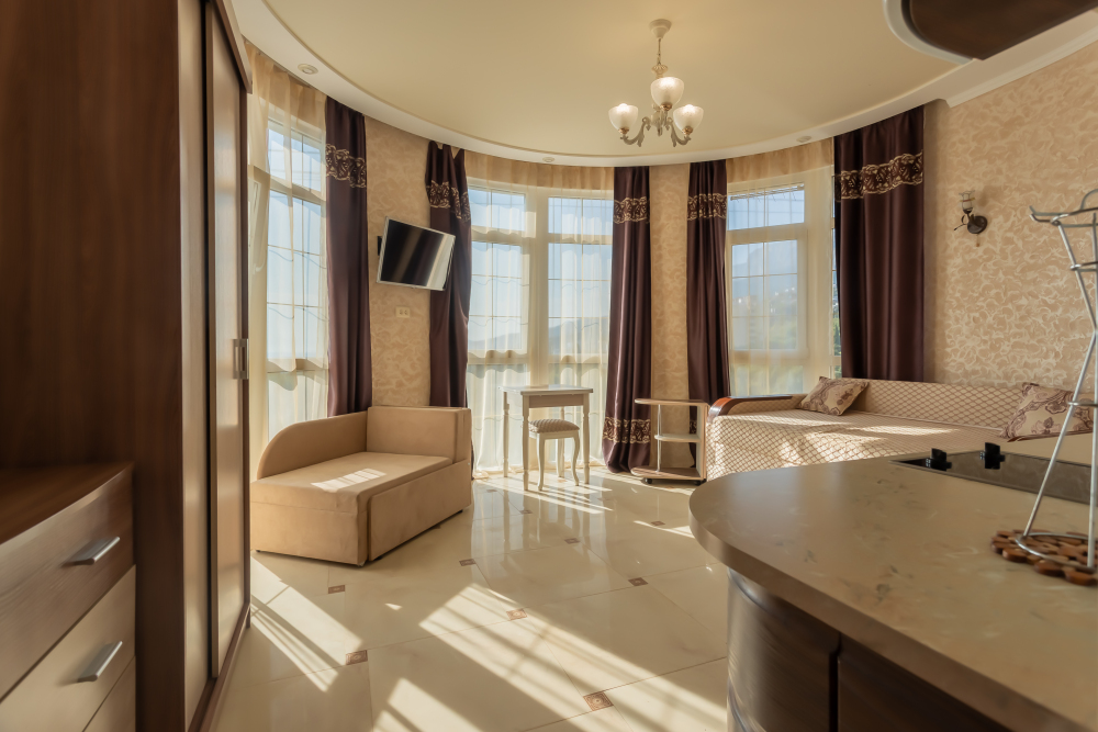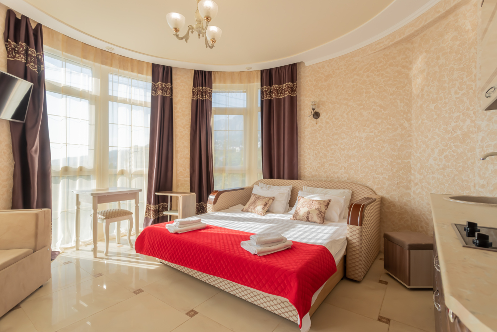 Романтичный круглый номер с полноценной кухней.