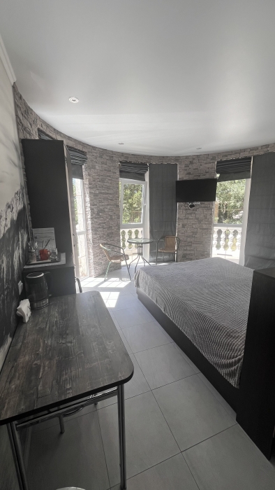 Уютный номер с балконом и двуспальной кроватью.
