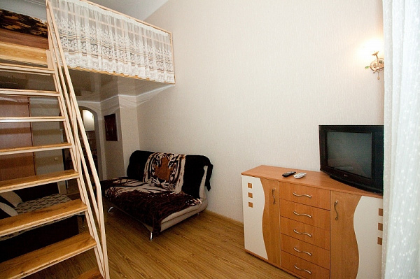 В квартире: кондиционер, телевизор, холодильник, утюг, микроволновка, сан. узел с душем. Вода горячая круглые сутки, отдельная кухня, вся не обходимая посуда для приготовления пищи, газовая плита. Пять спальных мест, кровать двухcпальная на втором уровне, внизу два дивана: односпальный и двуспальный.