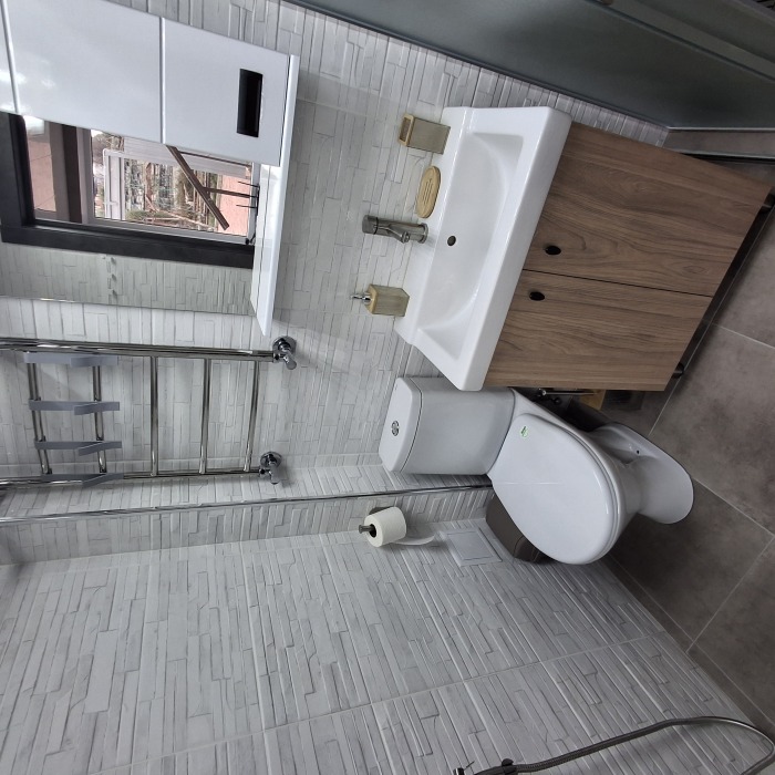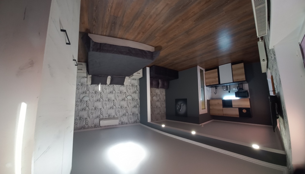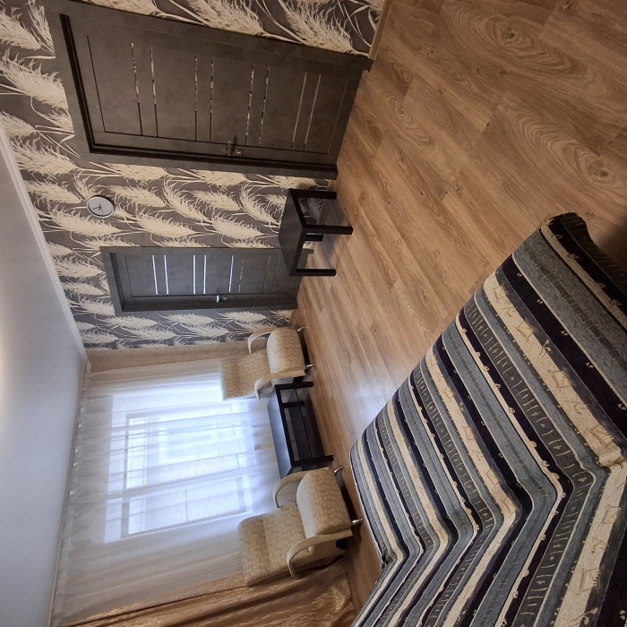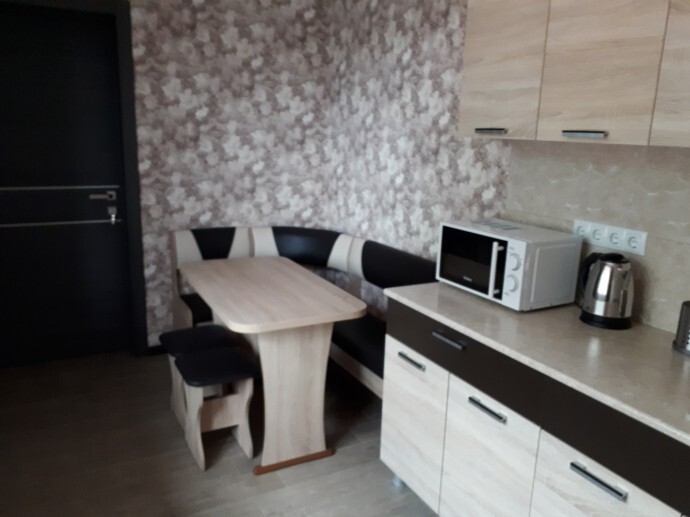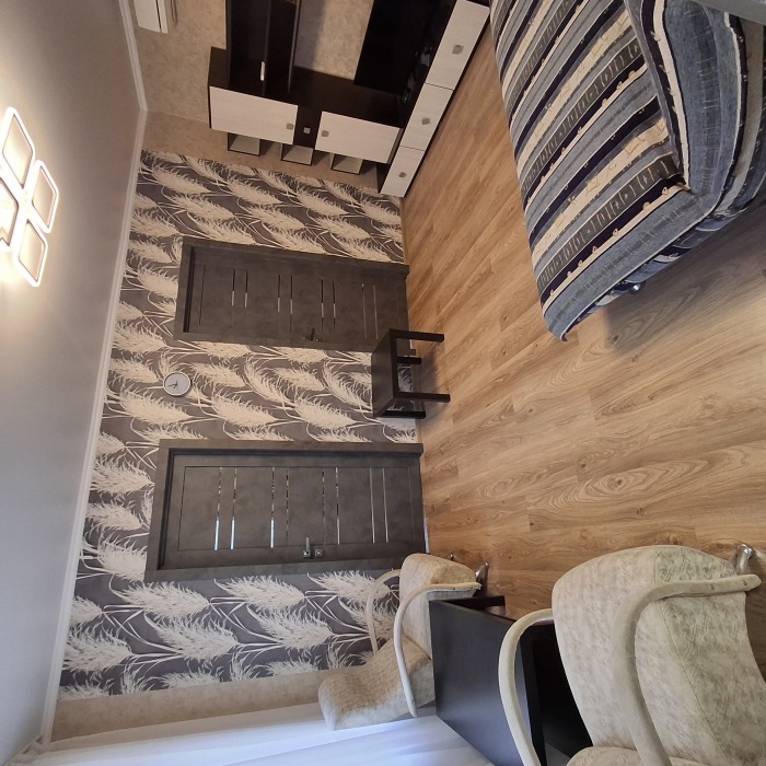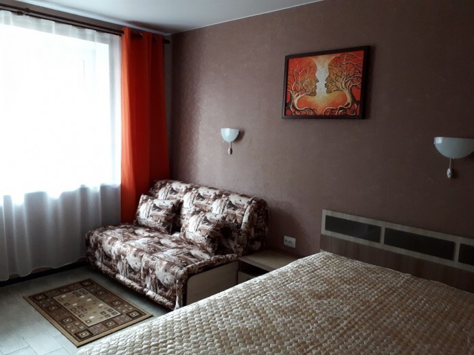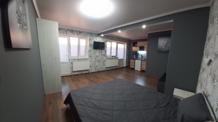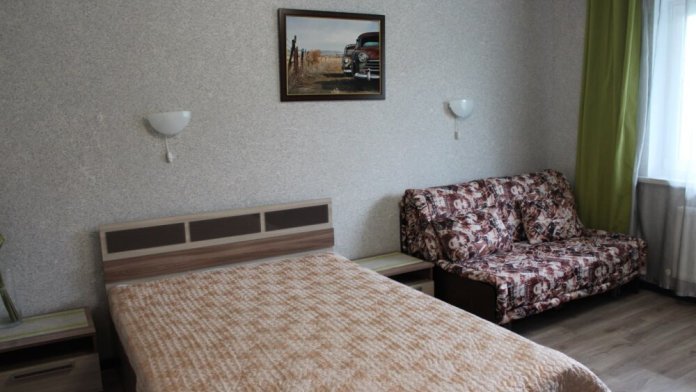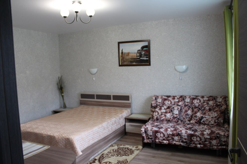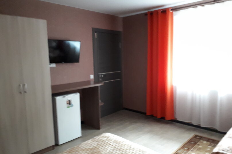 Однокомнатный 4-местный благоустроенный номер на 1 этаже двухэтажного здания. В номере: двухспальная кровать, двухспальный раскладной диван, прикроватная тумбочка, холодильник, кондиционер (сплит), жк-телевизор, санузел, шкаф. Зона отдыха на улице.