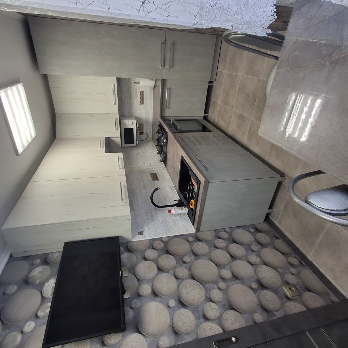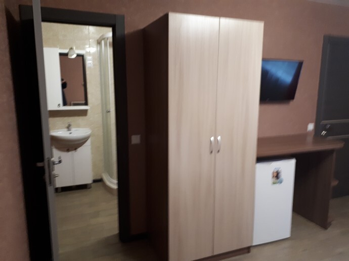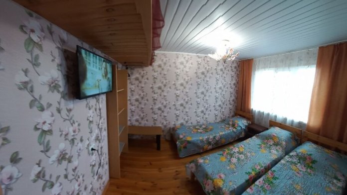 Номер однокомнатный 3-местный со всеми удобствами, расположен в одноэтажном здании в отдельном дворе. В номере: три односпальные кровати, телевизор, кондиционер, кухня со всем необходимым, холодильник, газ плита, мойка, умывальник, душ, туалет.