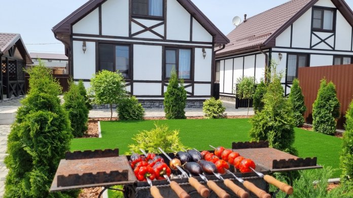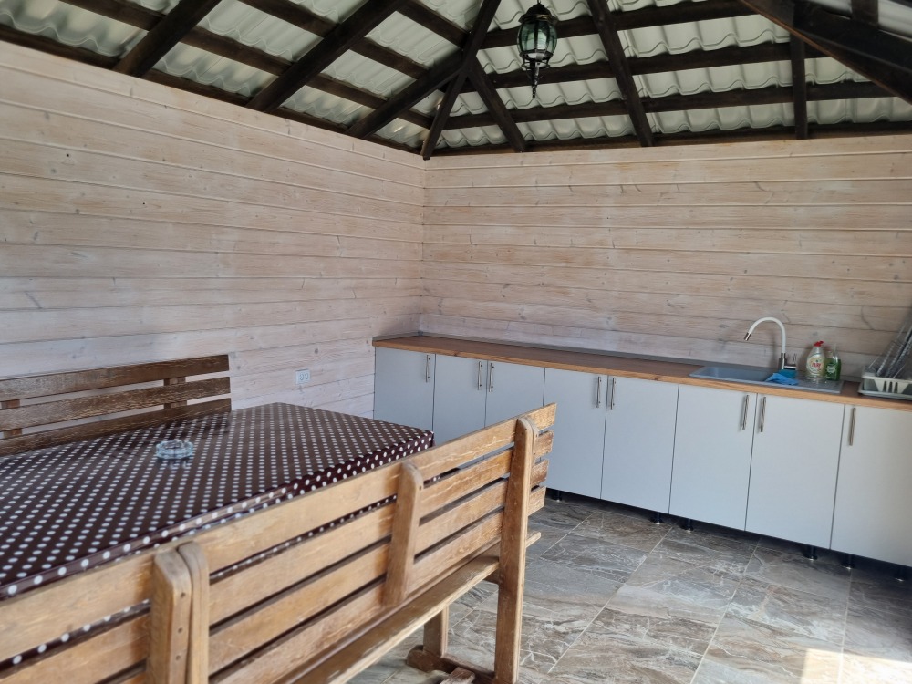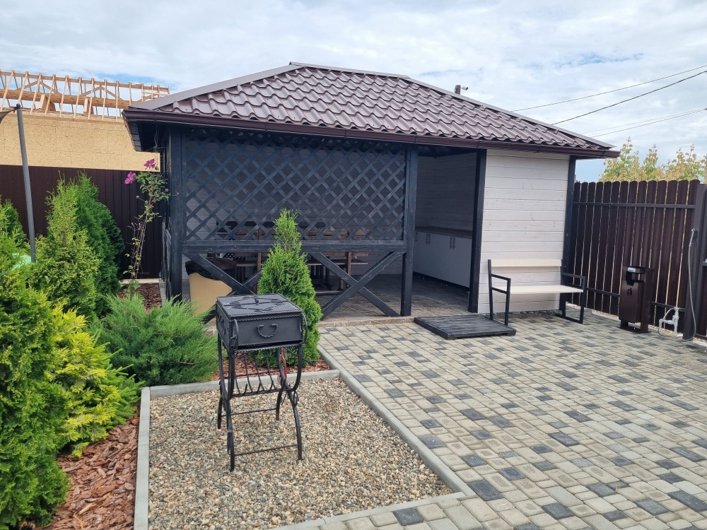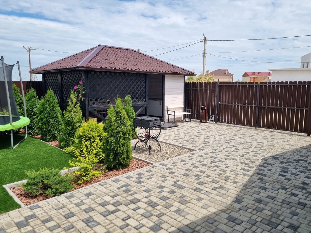 Во дворе есть большая беседка со столом и лавочками, мангал со всем необходимым для барбекю. Для детей есть большой батут, качели. На территории Wi-Fi.