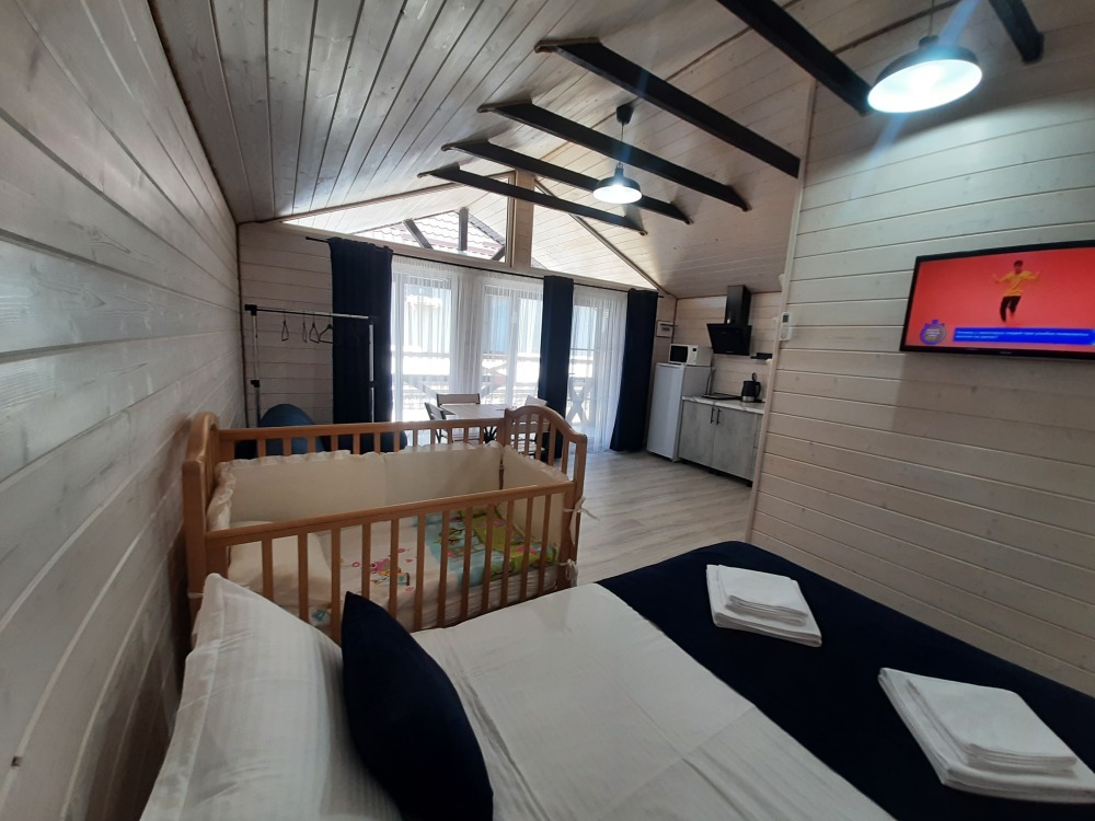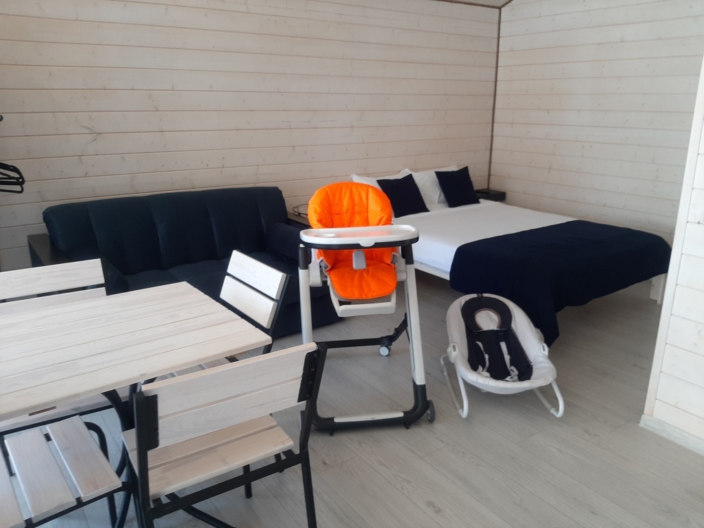 Белоснежное постельное бельё и полотенца входят в стоимость. Также для малышей предоставляем детскую кроватку и стульчик для кормления.