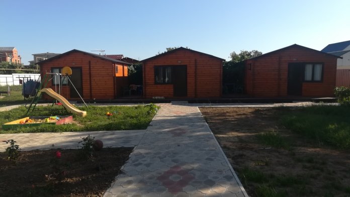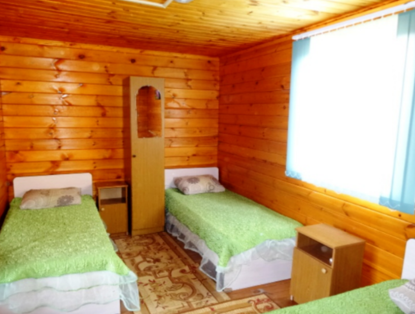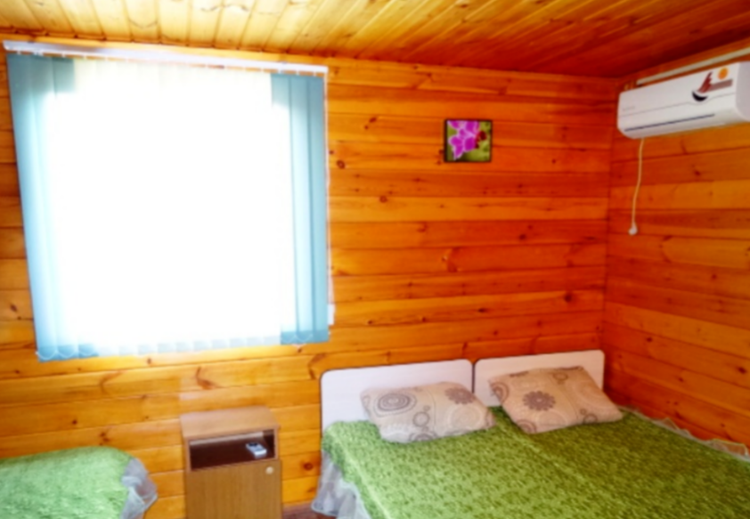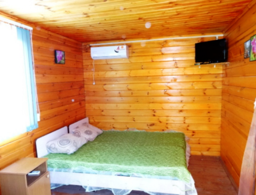 На озеленённой территории расположены деревянные домики со всеми удобствами.