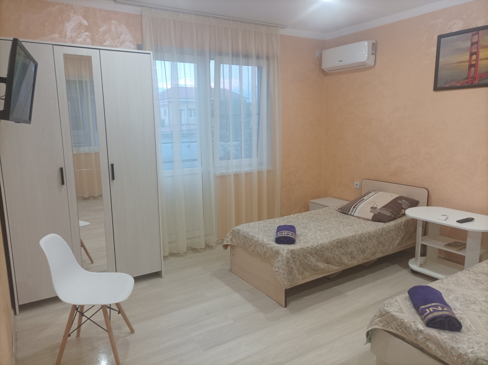 Номера находятся на первой береговой линии от моря (в двух шагах) на озелененной территории.Пляж песчаный.Номера находятся на втором этаже.С балкона открывается вид на море.