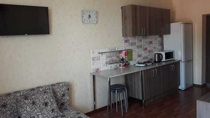 Прекрасная студия прямо на берегу моря. Все необходимое для жизни есть. В шаговой доступности магазины, кафе. Море вообще в двух шагах, ходили к нему прямо в купальниках. Отдельный респект ????человеку, придумавшему краны во дворе для мытья ног после моря. Закрытая территория, детская горка и качели для детей, воду можно купить прямо в холле дома на 1 этаже. Нам очень понравилось. Хозяйка встретила, все показала, рассказала, WiFi работает, телевизор тоже. Но на он был не нужен, включали пару раз в обед. Если ещё раз судьба приведёт в Джубгу, то конечно только сюда. Джубга ❤️❤️❤️!