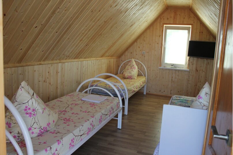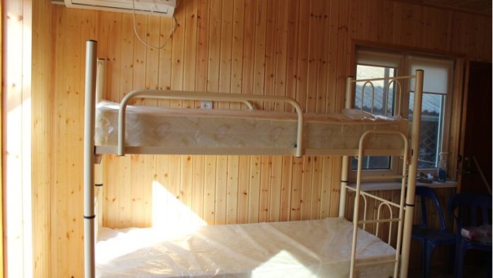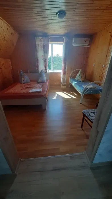 Трехэтажный отдельный домик на 8 человек. На первом этаже кухня, душевая. На втором и третьем этаже комнаты на 4 человека. В каждой комнате: сан. узел, ТВ, сплит система. На втором этаже большой балкон.