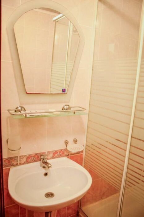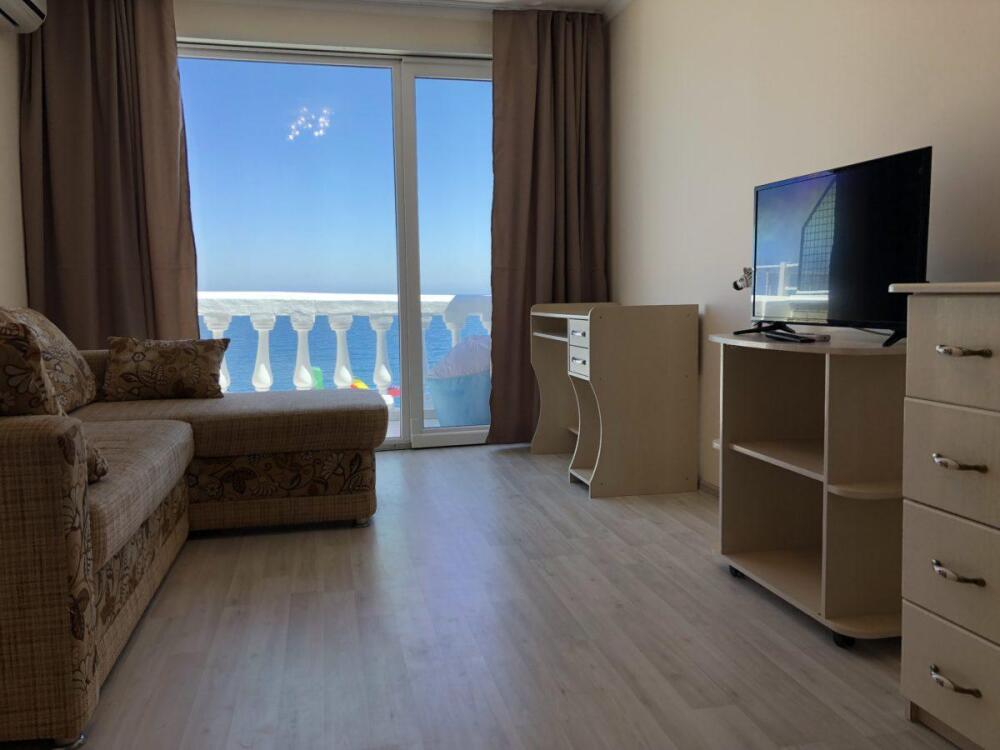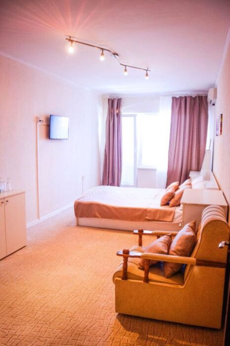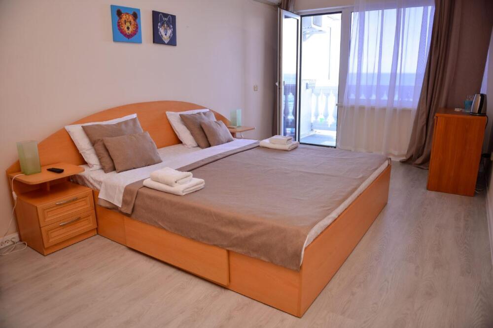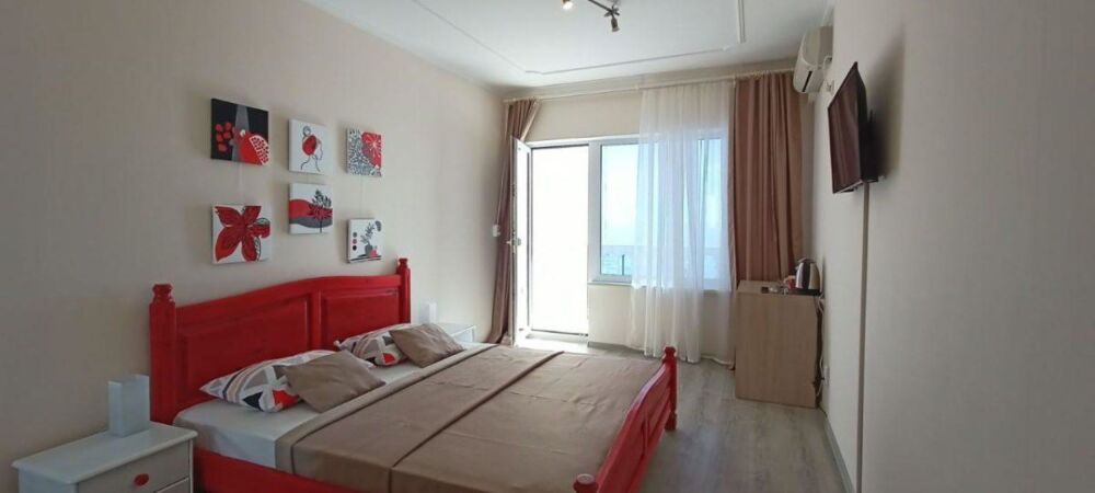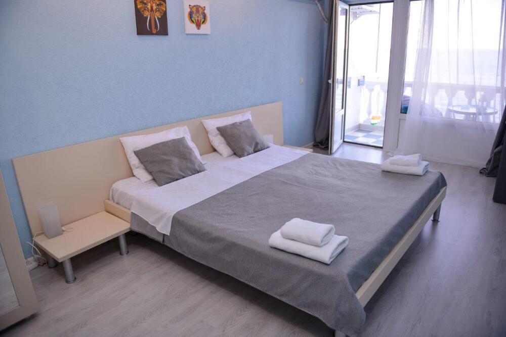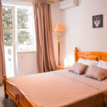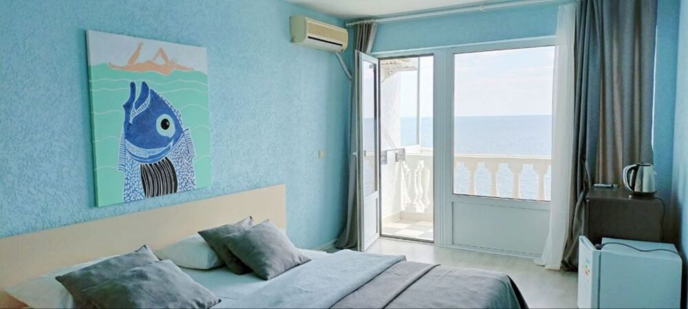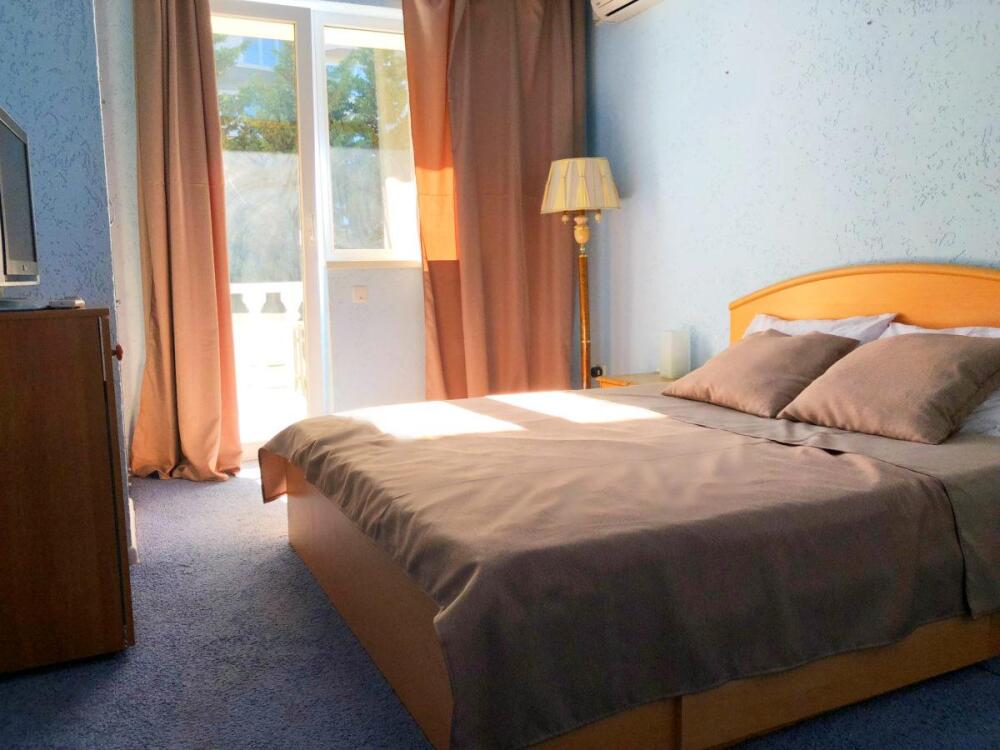 Комфортабельный номер с большим балконом с потрясающим видом на море. В номере все удобства: сплит-система, кабельное ТВ. Wi-Fi, холодильник, душ, фен, мыло, шампунь. Утюг по запросу.