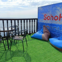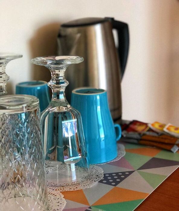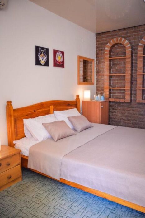 К услугам гостей предоставляются комфортабельные комнаты, терраса с панорамным видом на море или сад, плазменным телевизором, сплит-системой, холодильником, чайником, посудой, ванными принадлежностями. Для гостей предоставляется собственный пляж в 10 метрах от апартаментов, шезлонги и зонты для гостей бесплатно. В нашей части набережной запрещено движение автомобилей, что позволяет безопасному отдыху с детьми. Полная реставрация была произведена в 2018 году.