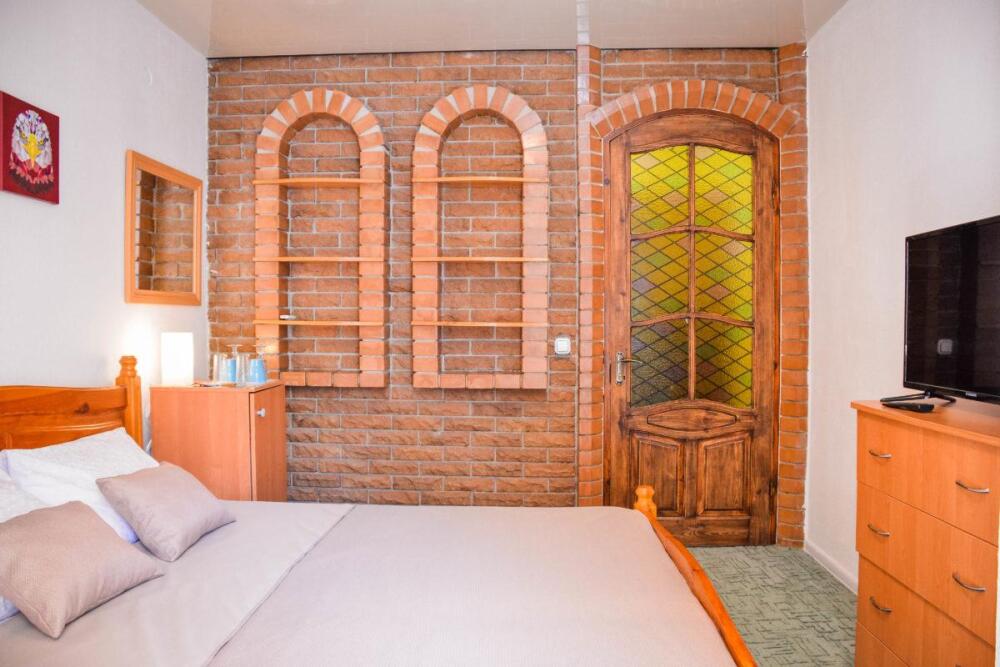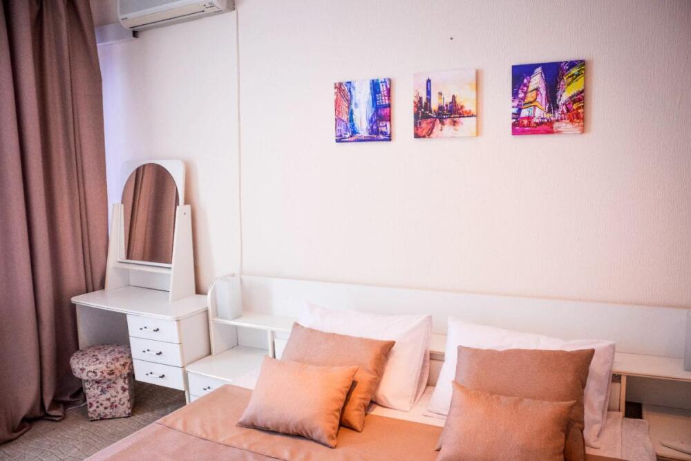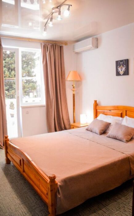 Стандарт с двухспальной кроватью. Балкон с видом на горы. В номере холодильник, сплит-система, кабельное ТВ, чайник, полотенца, мыло, шампунь.