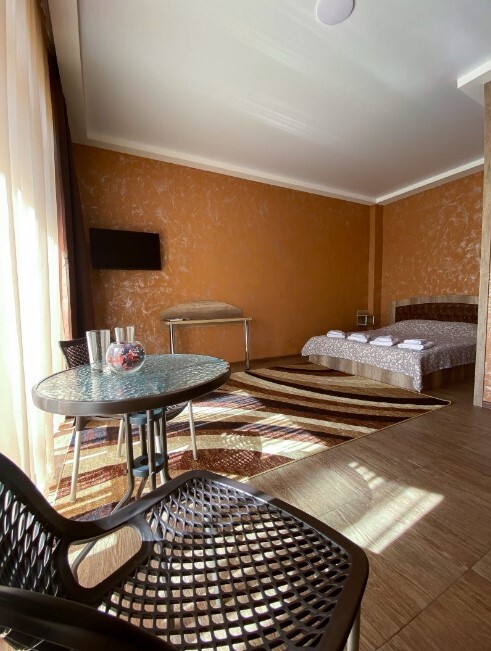 Мы предлагаем своим гостям комфортабельные номера, выполненные в современном дизайне и оборудованные всем необходимым для комфортного проживания, бесплатная охраняемая стоянка для автомобилей. На территории отеля бесплатный открытый бассейн для детей и взрослых и общий лаундж. Вечернее кафе с меню, которое Вас приятно удивит.