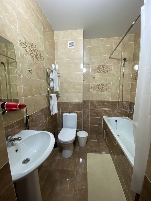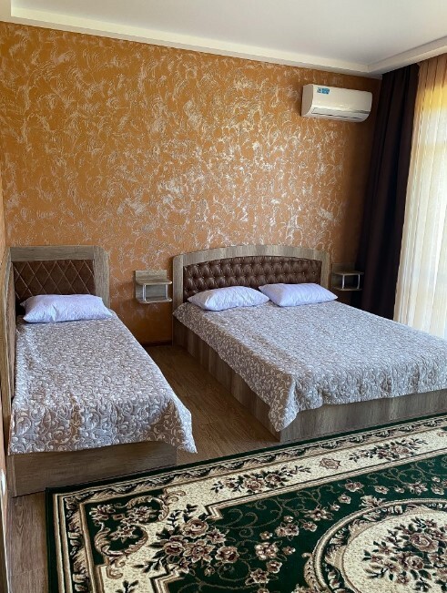 В номере: двуспальная и односпальная кровати, а также есть возможность установки дополнительного спального места. Ванная комната, набор полотенец, фен. Вместительный шкаф для одежды, кондиционер.
