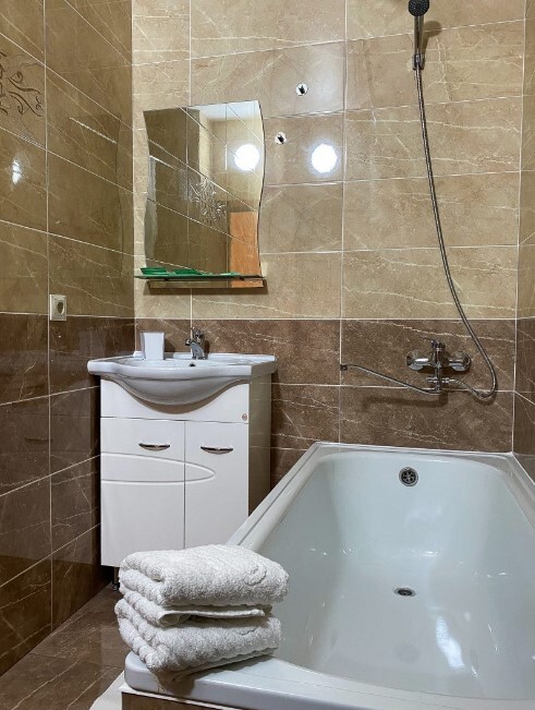 Подходит для 1-2 х гостей. Мягкая двуспальная кровать, просторный шкаф-купе для ваших вещей и ванная комната с белоснежными полотенцами обеспечат вам комфорт и уют.
