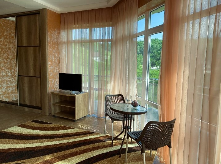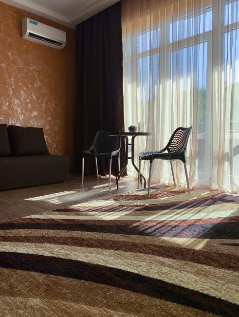 Просторный двухместный номер с огромным балконом 15 КВ.м., на котором можно встретить теплый южный вечер.