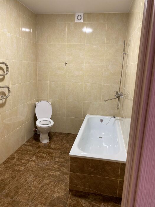 Мягкая двуспальная кровать, просторный шкаф-купе для ваших вещей и ванная комната с белоснежными полотенцами обеспечат вам комфортный отдых.