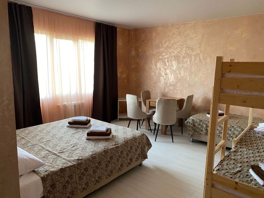 Просторный семейный номер, в котором могут расположиться до 5 гостей. В номере есть все для комфортного отдыха: удобные спальные места и постельное белье для всех гостей, набор полотенец и собственная ванная комната, кондиционер, холодильник, телевизор с кабельными каналами.