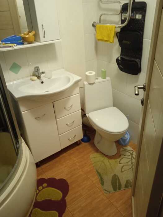 В квартире хороший ремонт, есть балкон с подсветкой, в спальне двухспальная кровать, шкаф, тумбочки и трельяж. В зале двухспальный диван, стенка, телевизор, сплит-система, кресло-кровать, стол, есть интернет. Коридор вешалка, холодильник. Ванная совмещенная с туалетом, есть бойлер, стиральная машина. На кухне газовая плита, вытяжка, кухонный гарнитур.