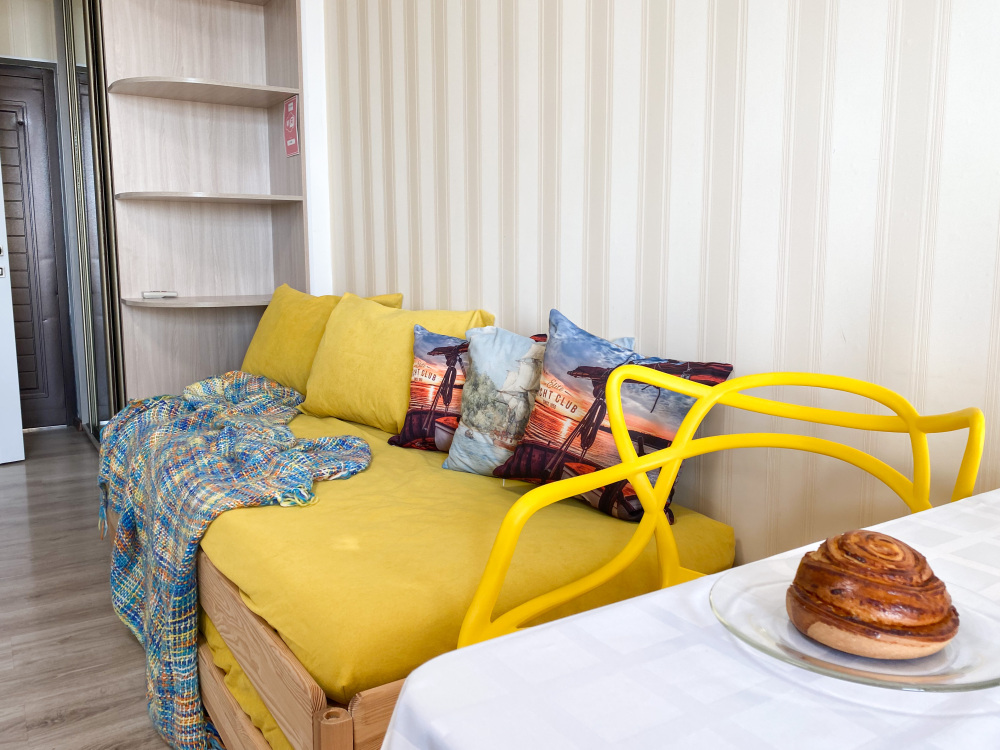 В распоряжении гостей: телевизор, кондиционер, кухонная зона, микроволновая печь, стиральная машина, фен, чайник, утюг. В апартаментах работает бесплатный Wi-F.