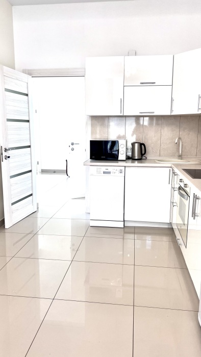 В квартире очень удобно организовано пространство: две отдельные спальни, с двумя уборными, одна гостевая комната и кухня, которая оборудована всем необходимым для комфортного проживания большой семьи.