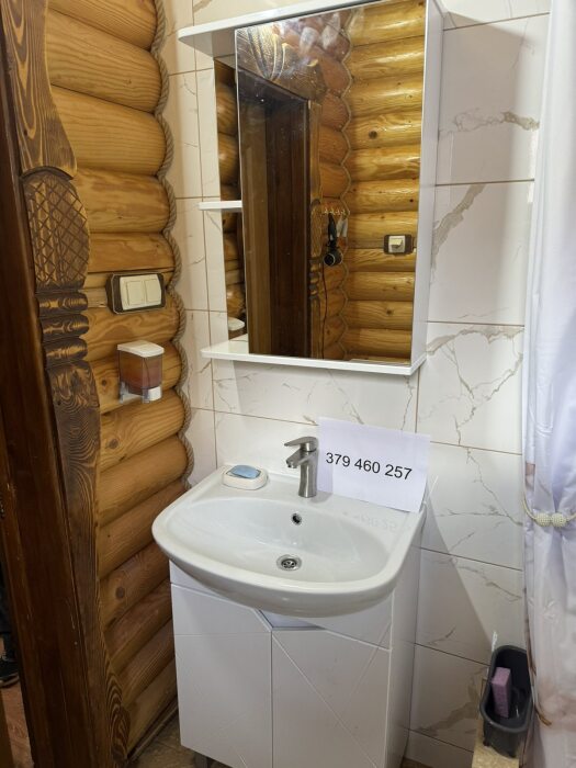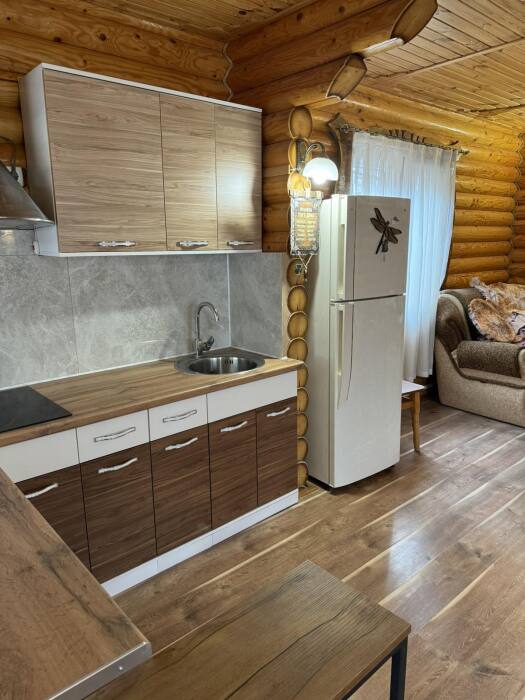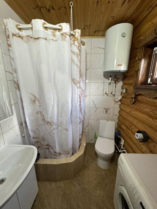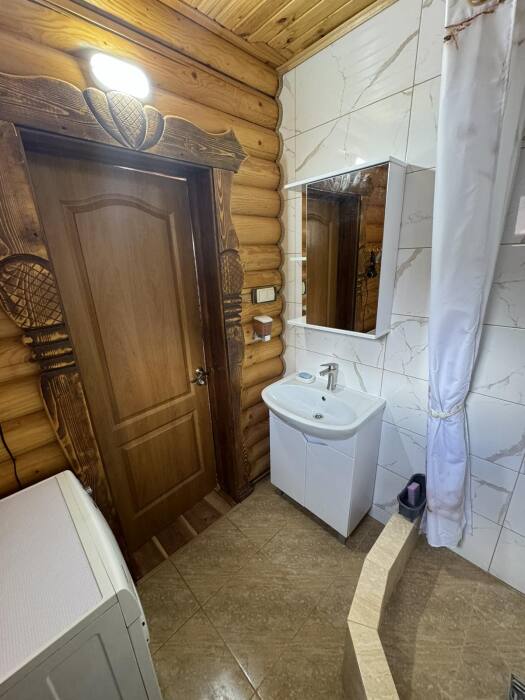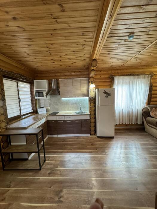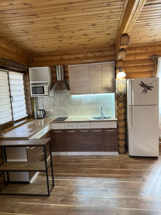 На первом этаже расположена кухня-гостиная (38 кв. м) со встроенной мебелью и необходимой бытовой техникой,( электро-плита, холодильник, микроволновка, кондиционер, телевизор, мультиварка), оборудована кухонным столом и угловым диваном. Санузел 6 кв. м с современной новой сантехникой, душ, стиральной машинкой автомат.