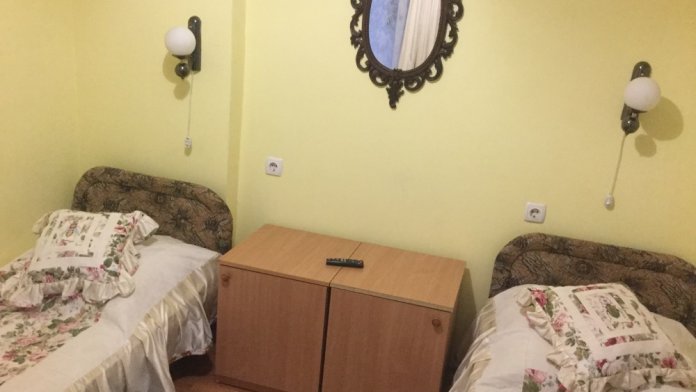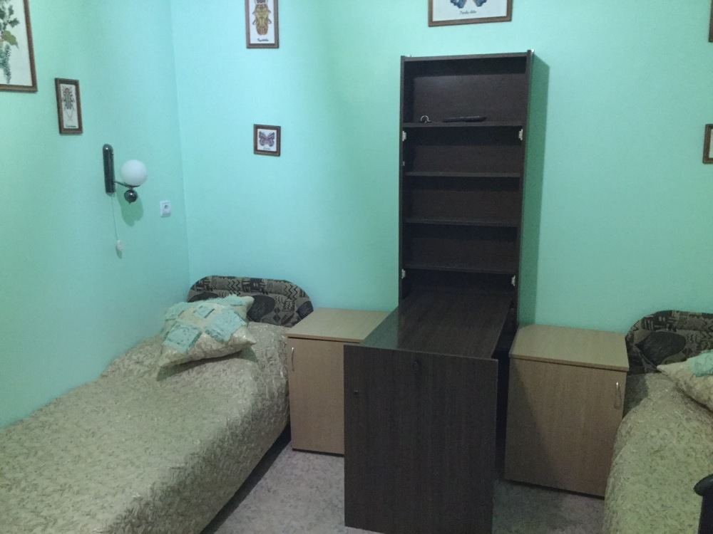 Общая кухня на первом этаже. Санузел общий, на два номера. Горячая и холодная вода постоянно.