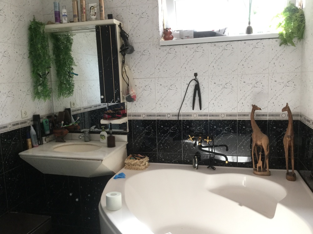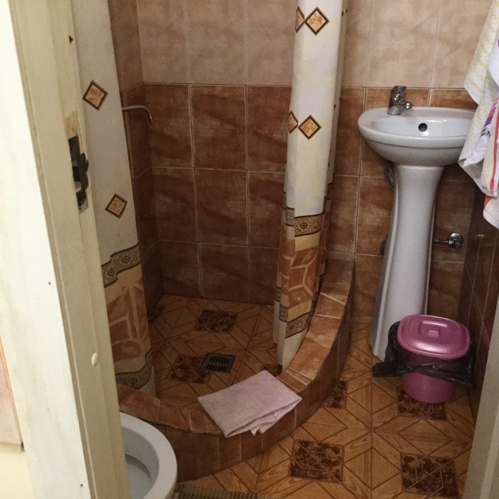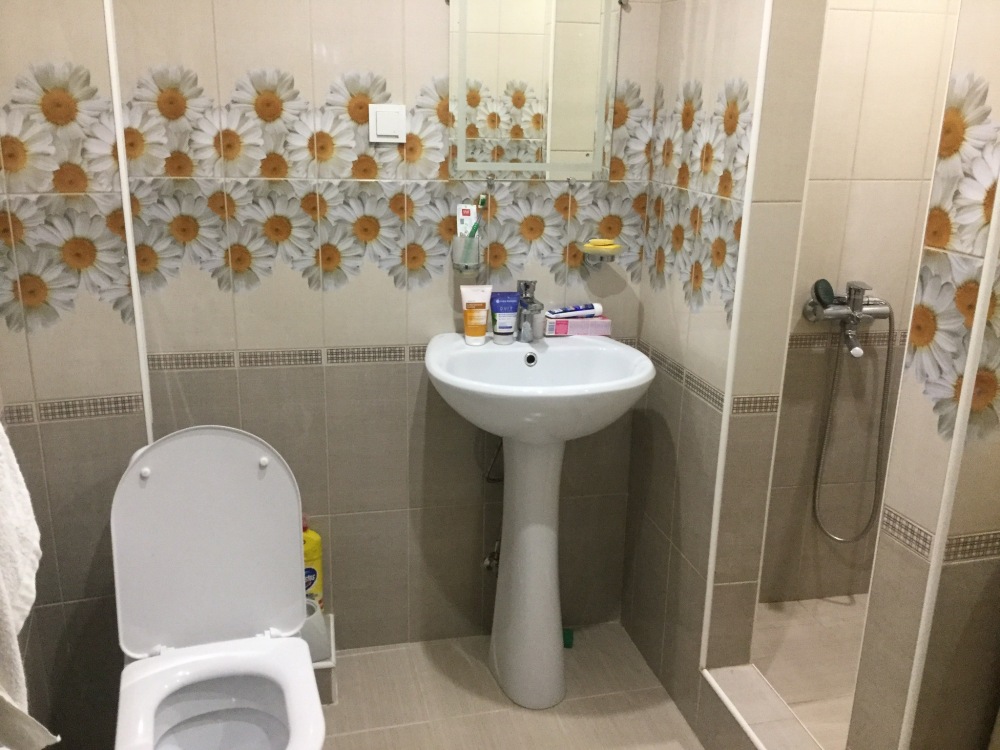 Душ и санузел на два номера. Большая общая кухня, оборудованная всем необходимым находится на первом этаже.