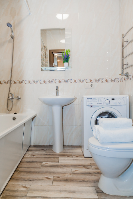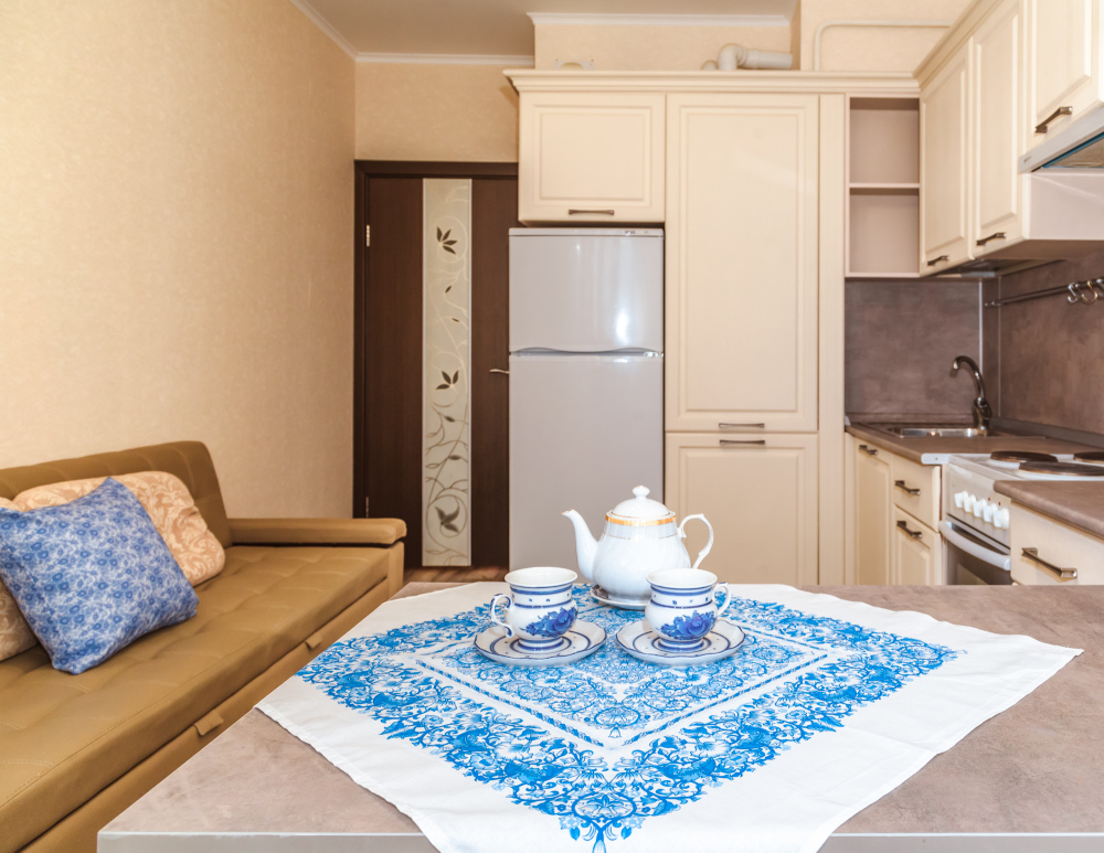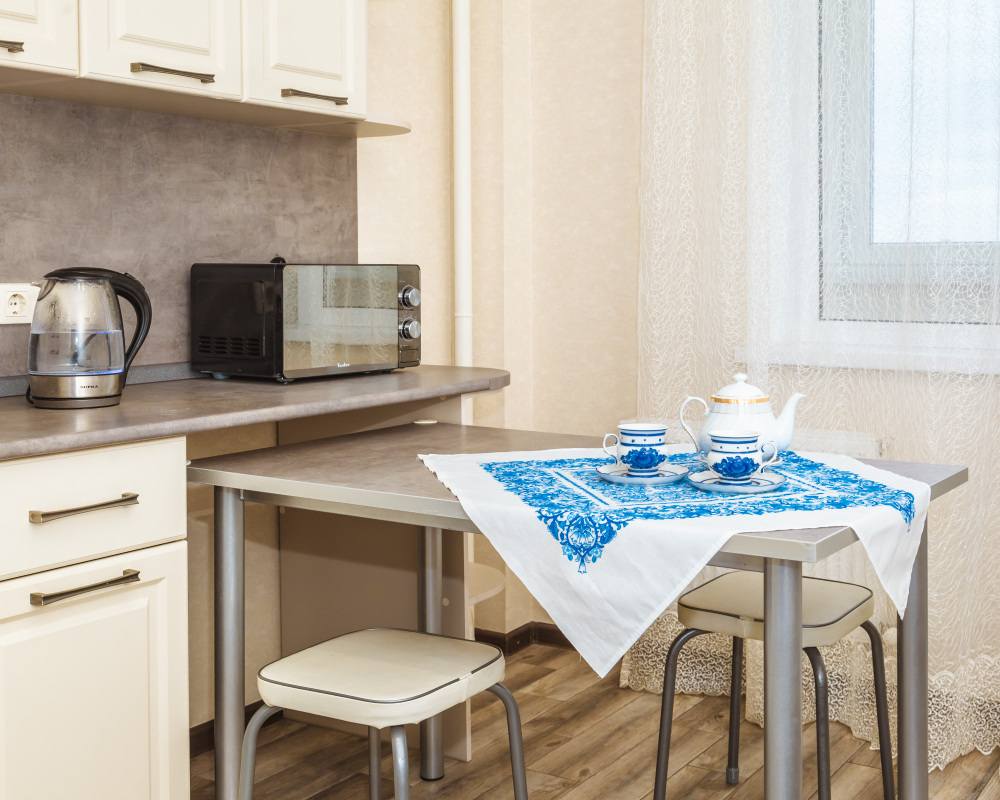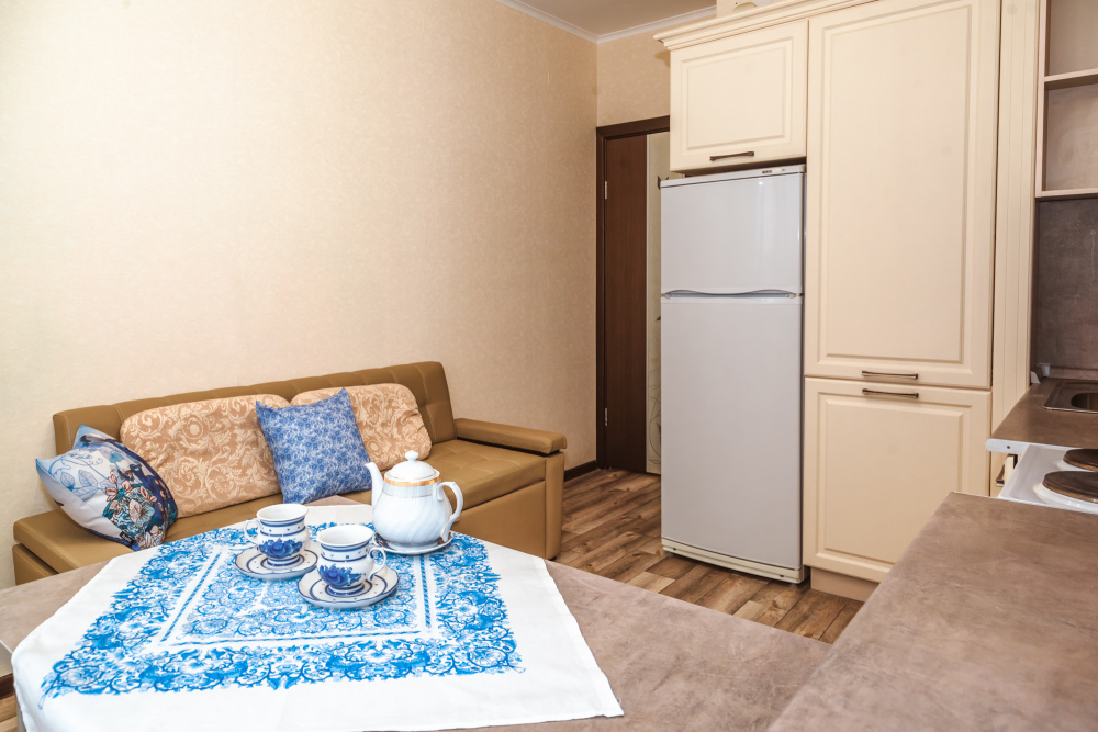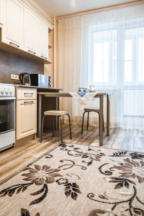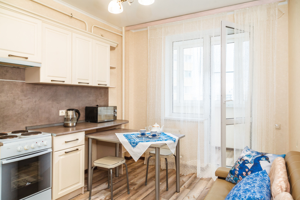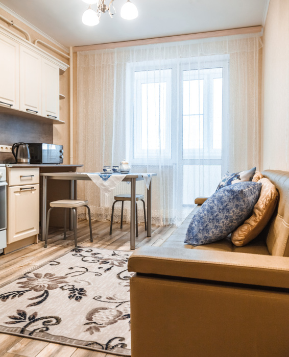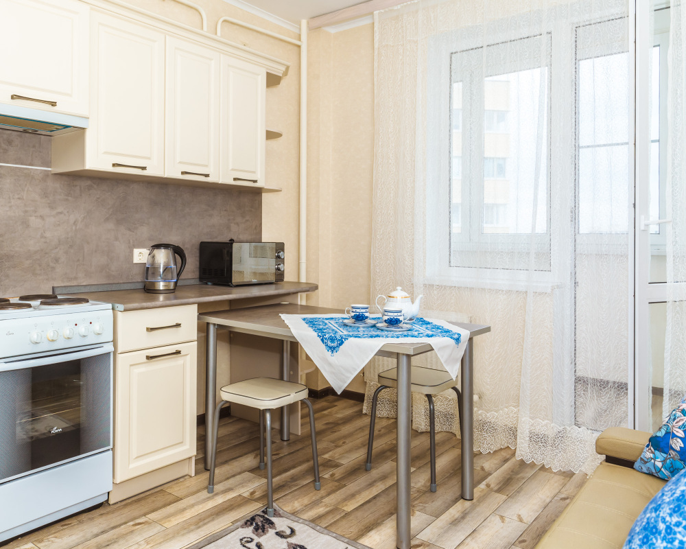 Вы найдете все необходимое для комфортного отдыха: wi-fi, удобная двуспальная кровать, дополнительный раскладной диван в гостиной и диван в кухне-столовой, лоджию, полностью укомплектованный кухонный гарнитур. Вокруг много магазинов и удобная транспортная инфрастуктура.