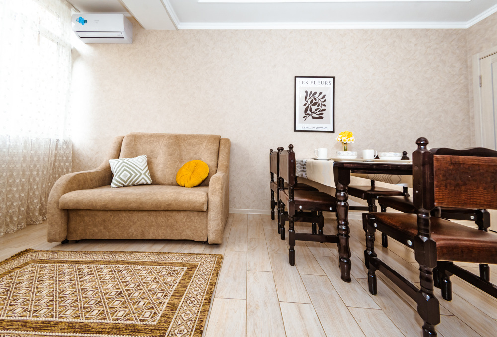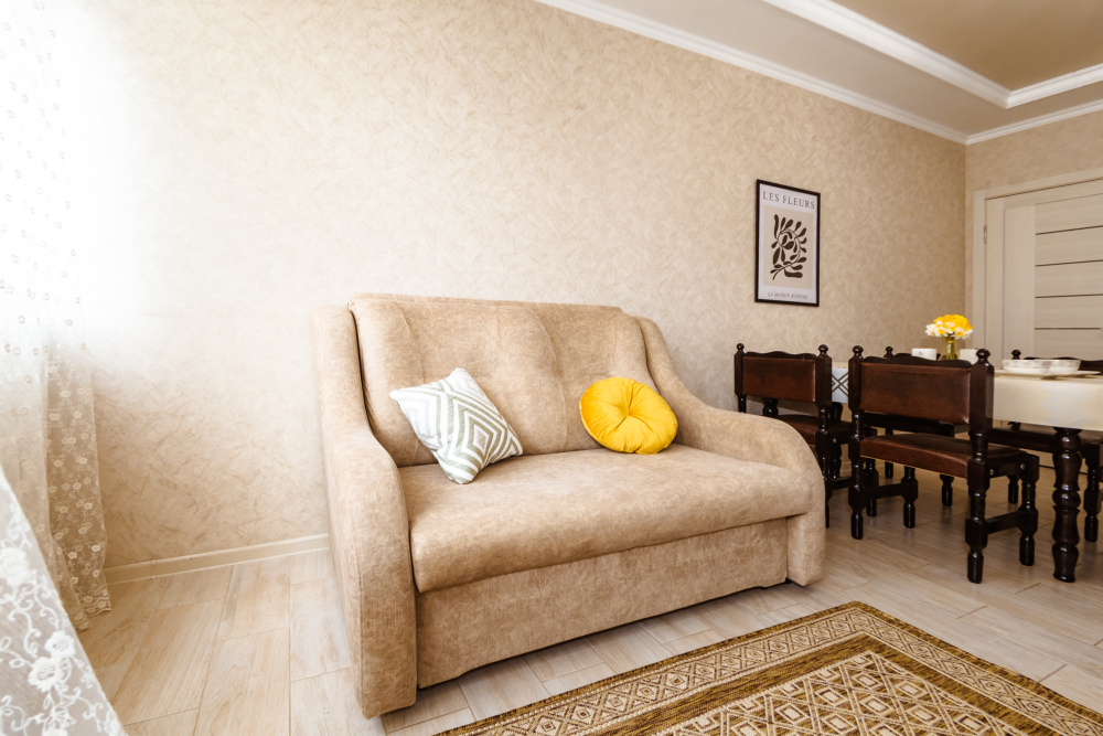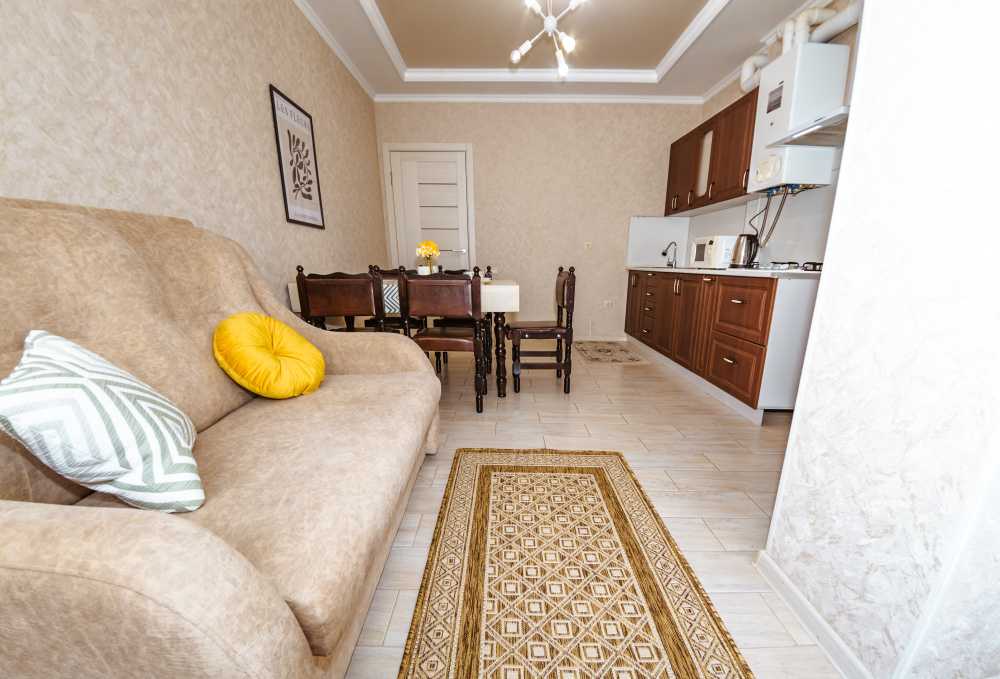 Вы найдете все необходимое для комфортного отдыха: телевизор, wi-fi, удобный двуспальный диван, дополнительный раскладной диван, полностью укомплектованный кухонный гарнитур. Вокруг много магазинов и удобная инфрастуктура.