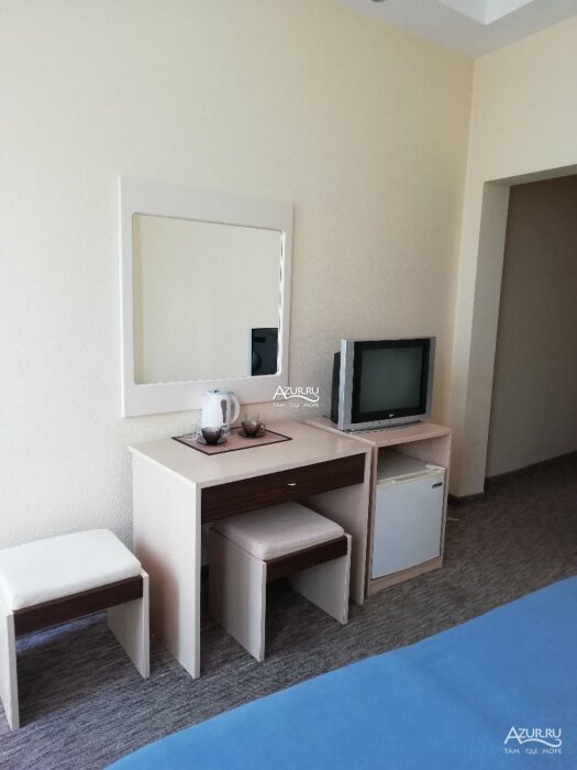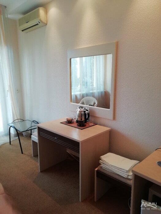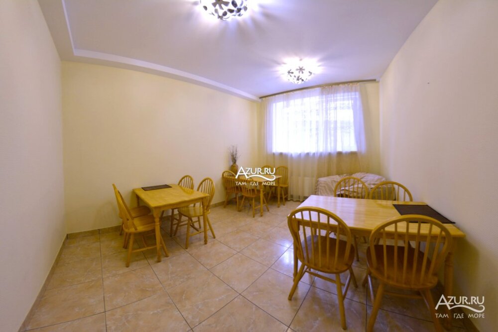На территории расположен открытый пресный бассейн с беседкой и площадкой для загара, множество зелени, площадка с мангалом и барбекю. Есть современная общая кухня, полностью оборудованная всем необходимым и посудой, столовая, летняя беседка у бассейна. Рядом остановка общественного транспорта, магазины, бары. В 10 минутах ходьбы - оборудованный пляж.