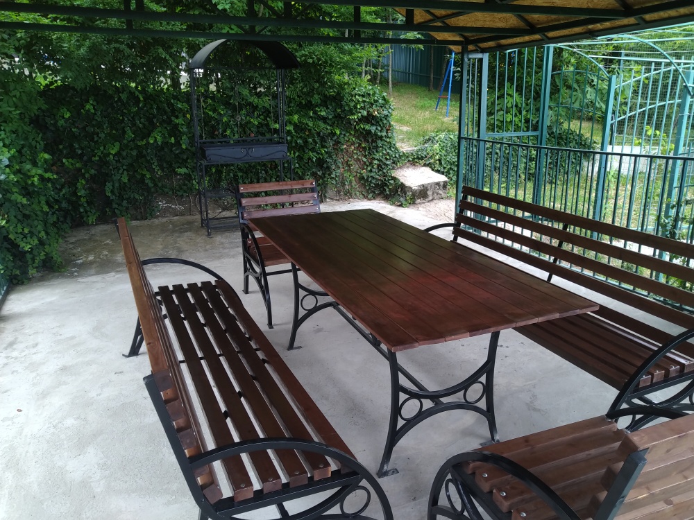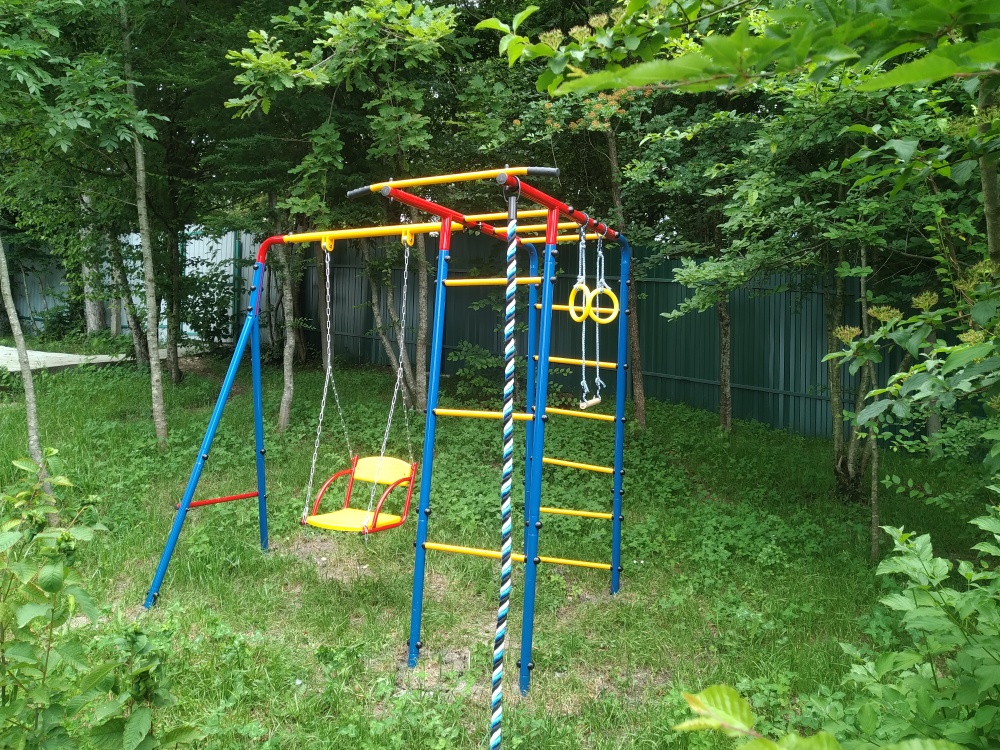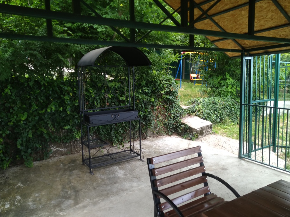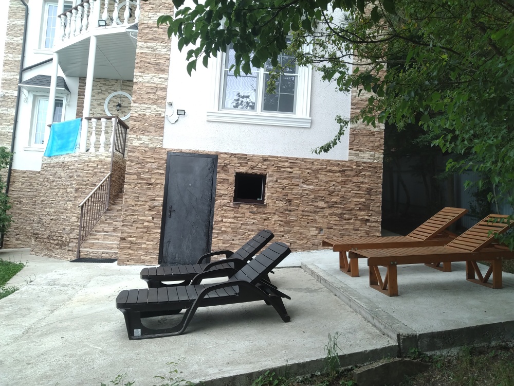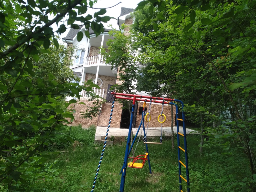 Во дворе имеется беседка для отдыха и мангал, место для загара с лежаками, детский спорткомплекс.
