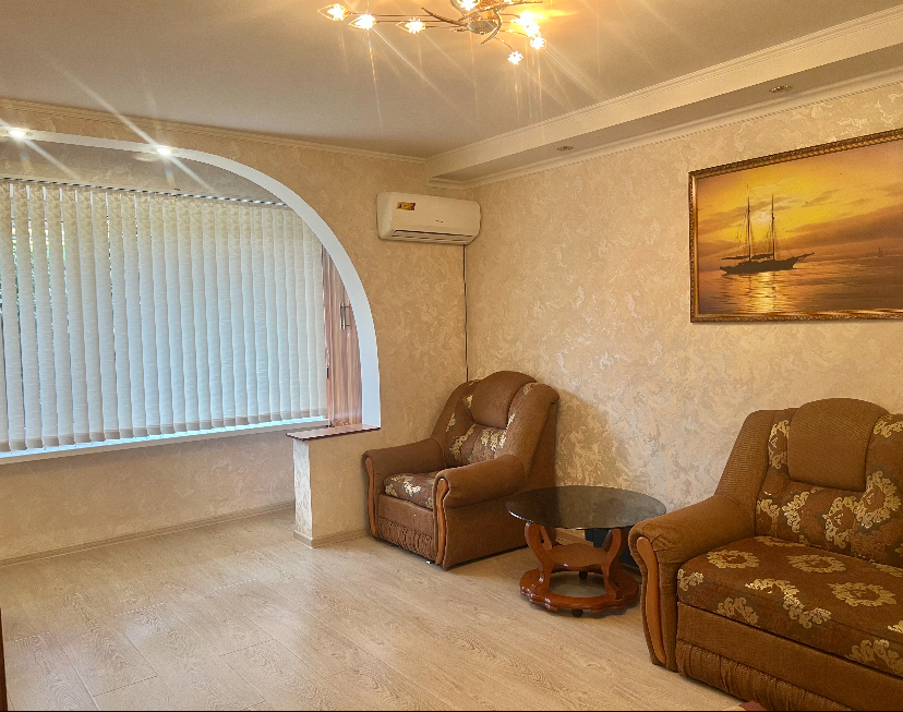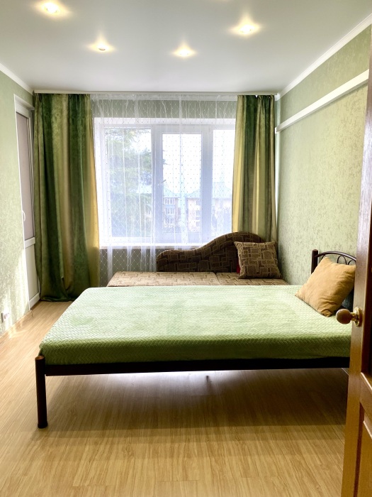 Квартира на первом этаже пятиэтажного дома, рядом с можжевеловой рощей.