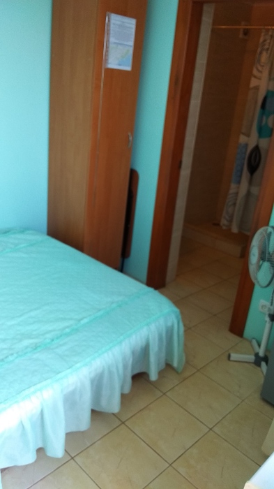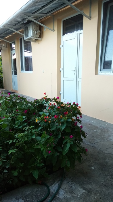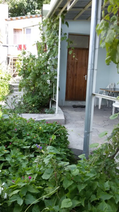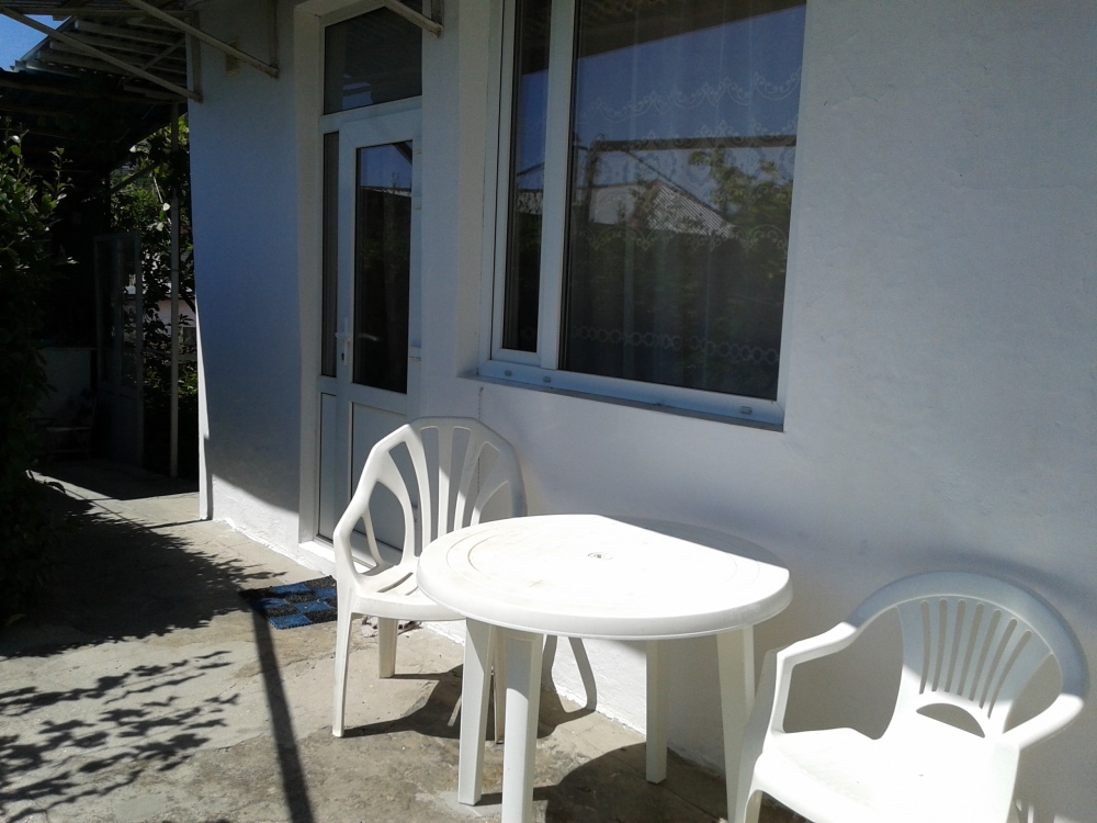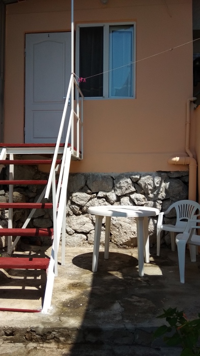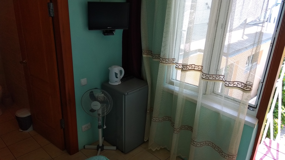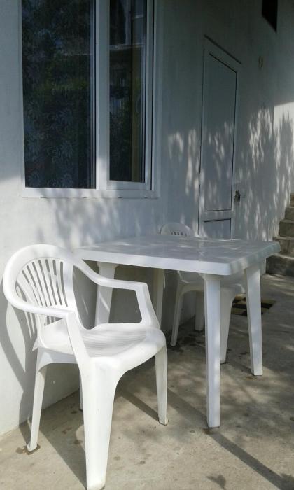 В номере есть напольный вентилятор. Во дворе рядом с номером столик, место для отдыха.