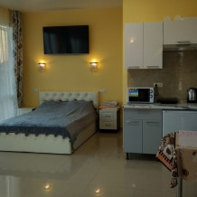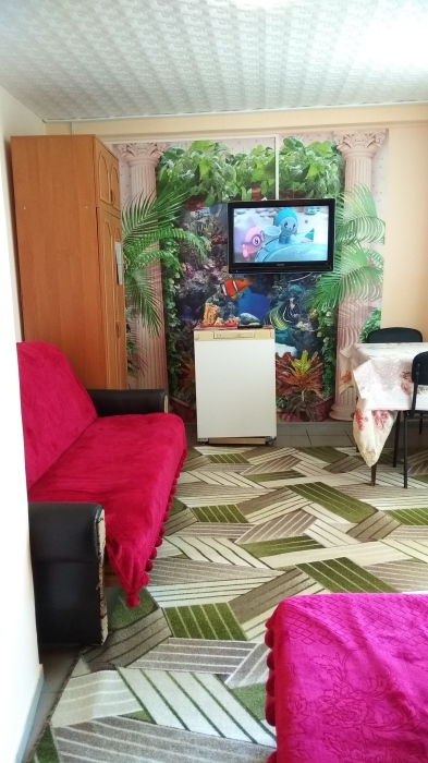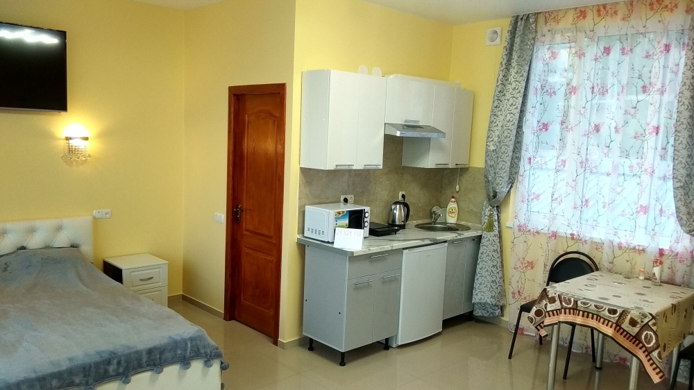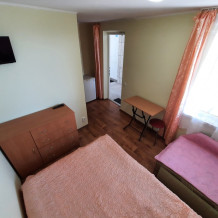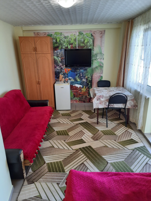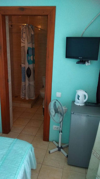 Гостям, для проживания, предлагаются уютные комнаты со всем необходимым для комфортного отдыха. В каждой комнате отдельный санузел, холодная и горячая вода, холодильник, телевизор, Wi-Fi. Также есть комнаты с кондиционерами, и отдельными кухнями, они сдаются круглый год.