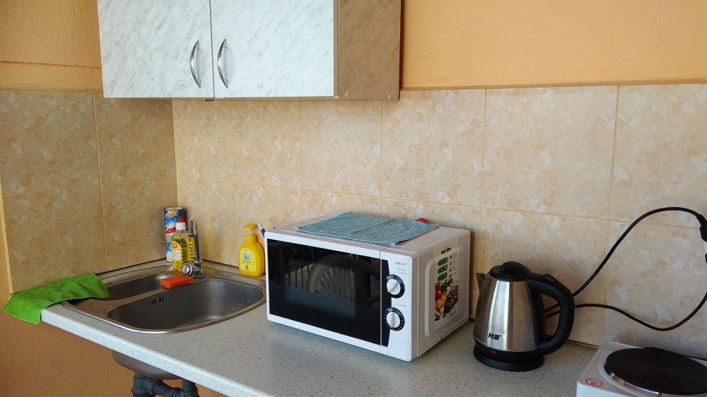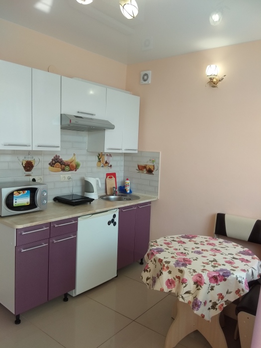 В номере кухня со всем необходимым, ванная комната, кондиционер, телевизор, теплый пол, высокоскоростной wi-fi, двухместная кровать, шкаф-купе