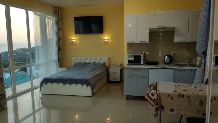 Номер сдаётся круглый год. В номере кухня, ванная комната, теплый пол, кондиционер, Wi-Fi, панорамные окна с видом на море.