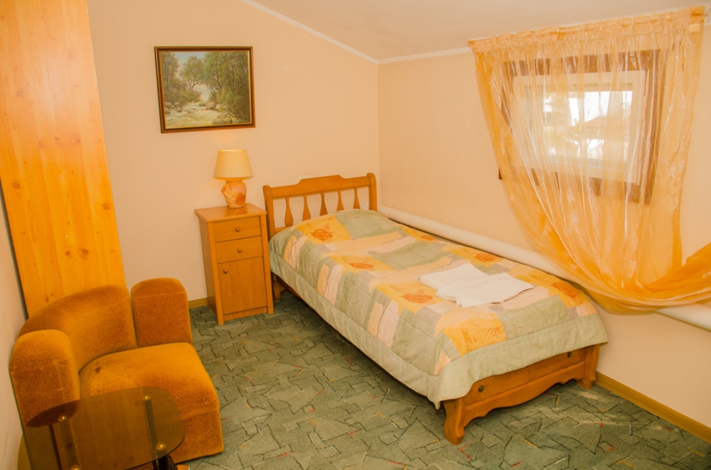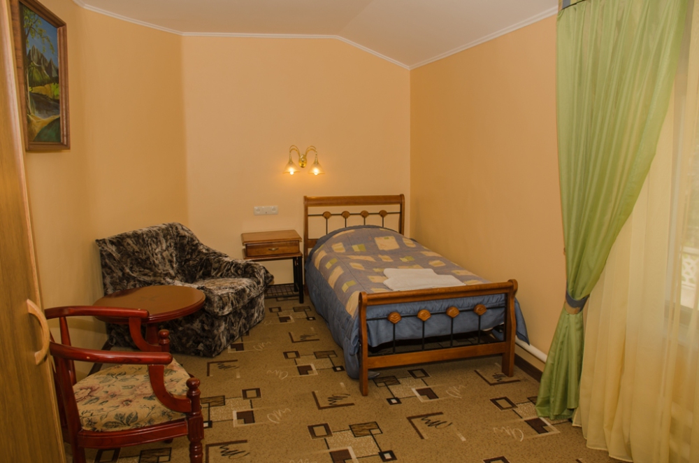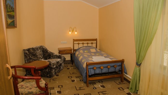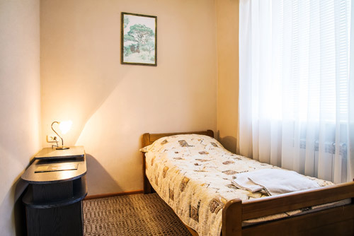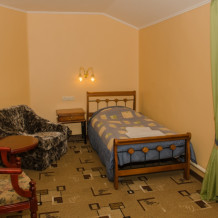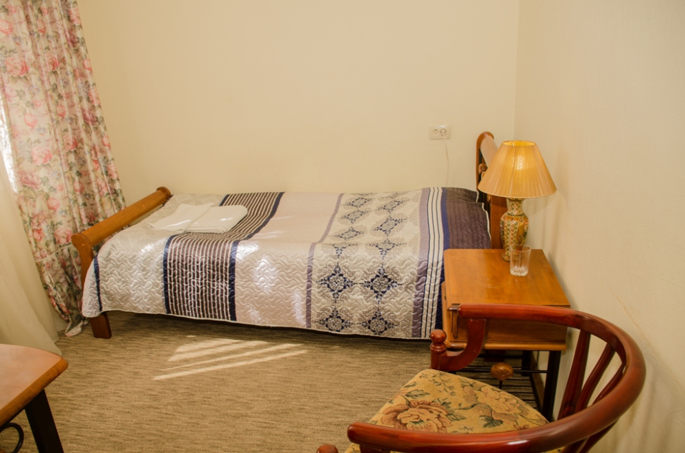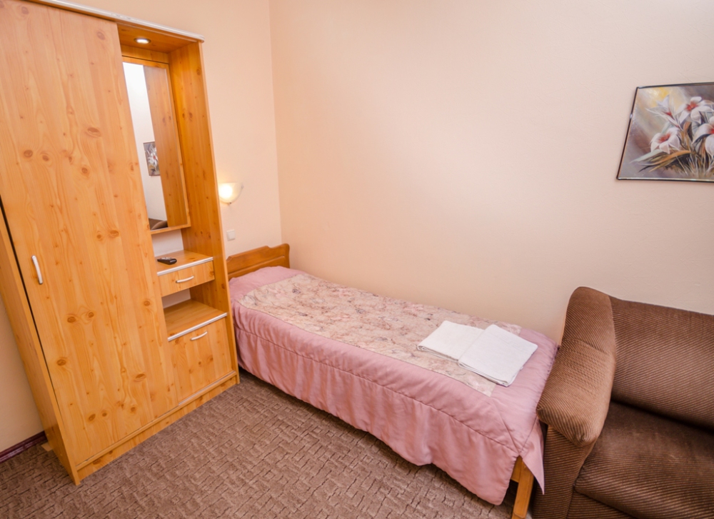 Номер удобен для людей, приезжающих в командировку, а так же, как вариант экономного отдыха. В номере: односпальная кровать; вентилятор; телевизор; душевая кабина, санузел, набор полотенец, набор туалетных принадлежностей, горячая и холодная вода круглосуточно.